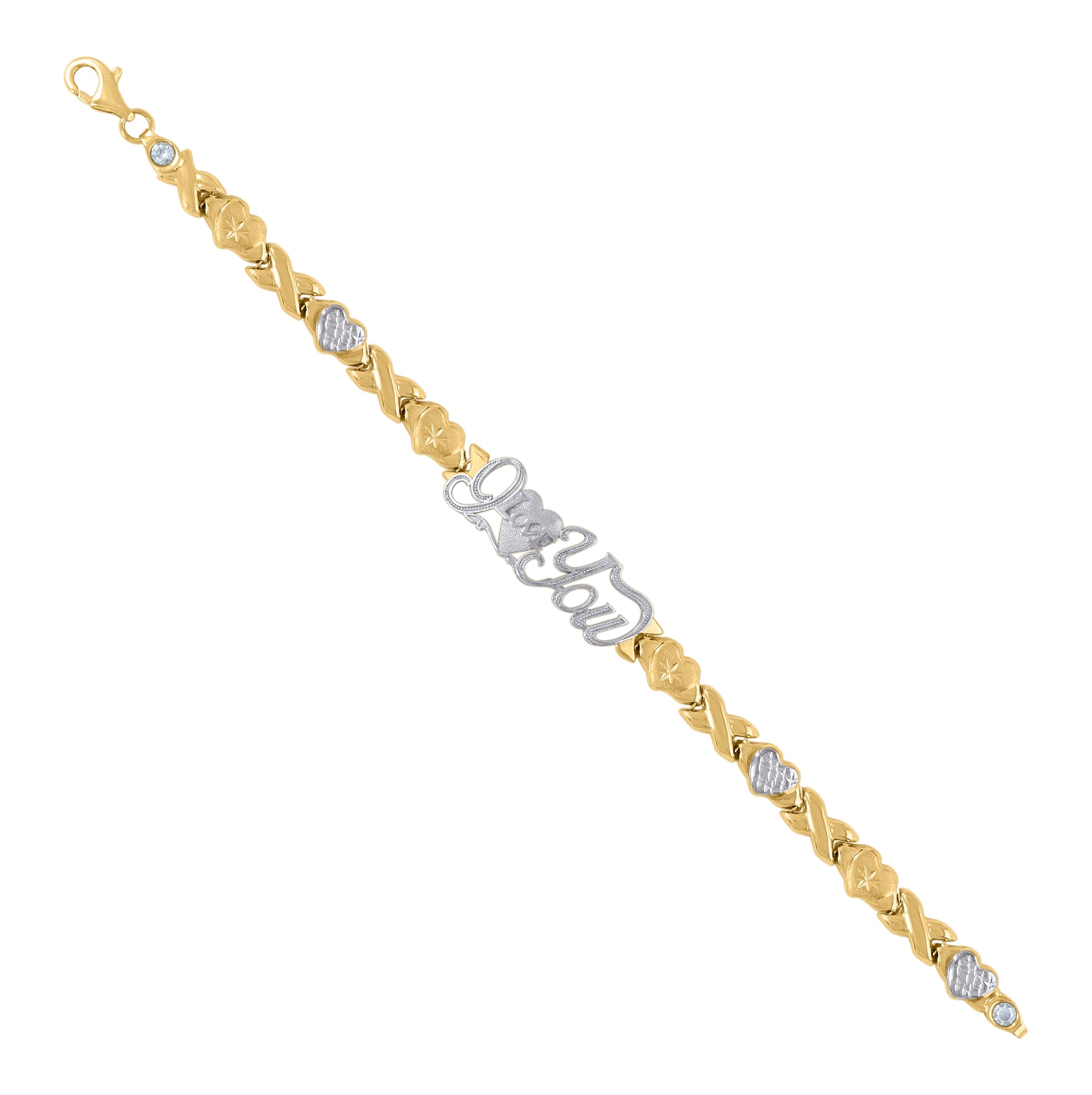 10K Two-tone Gold Womens I LOVE YOU Heart Link 7" Bracelet