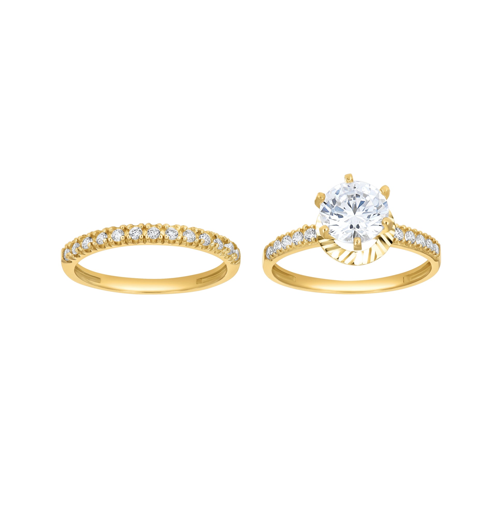 10K Two-Tone Gold Womens Round Cubic Zirconia Diamond Cut Bridal Ring Set