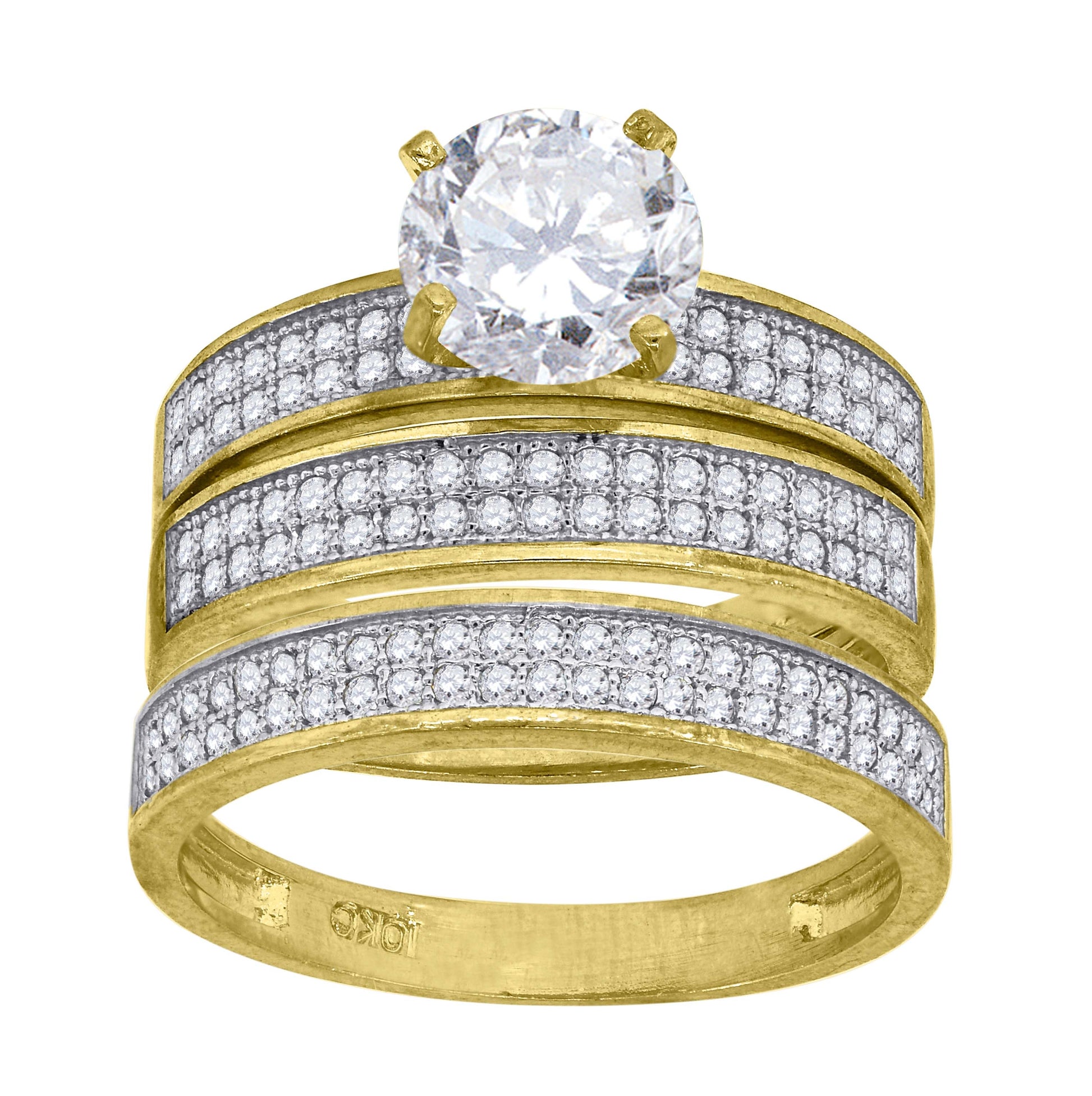 10K Two-Tone Gold Womens Round Cubic Zirconia Double Row Trio Ring Set