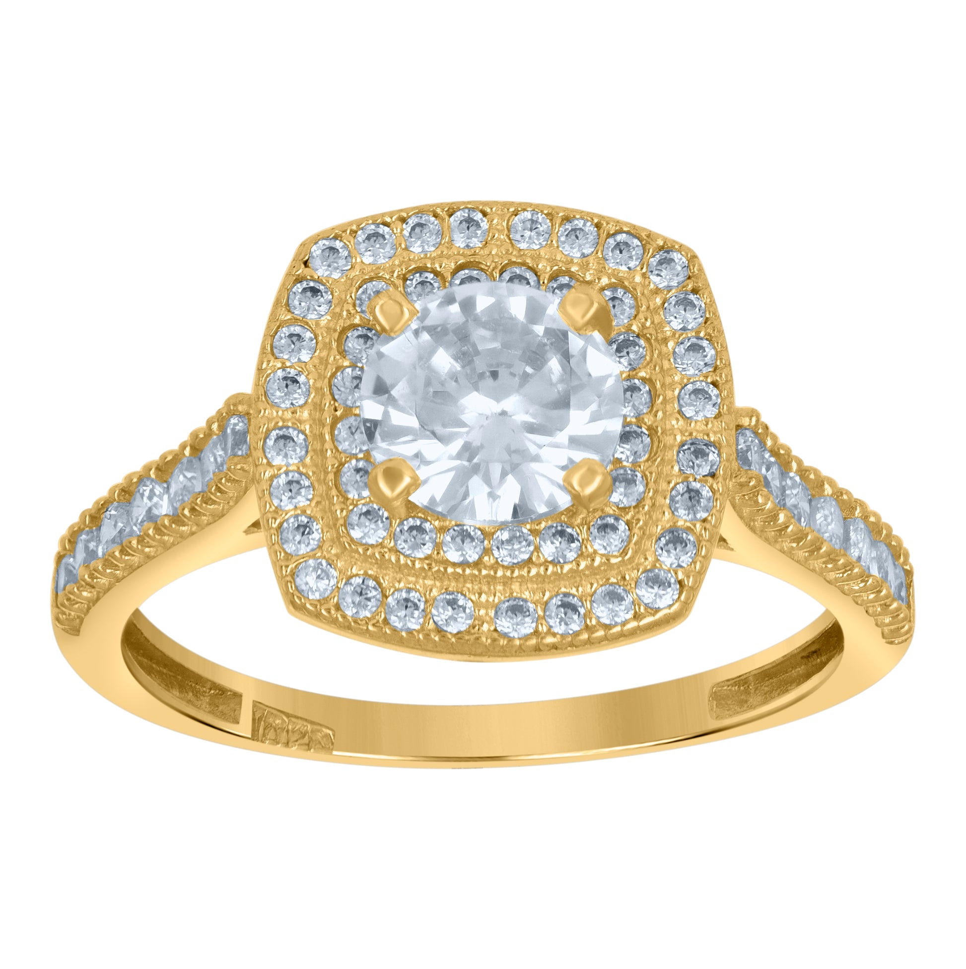 10K Two-Tone Gold Womens Round Cubic Zirconia Halo Engagement Ring