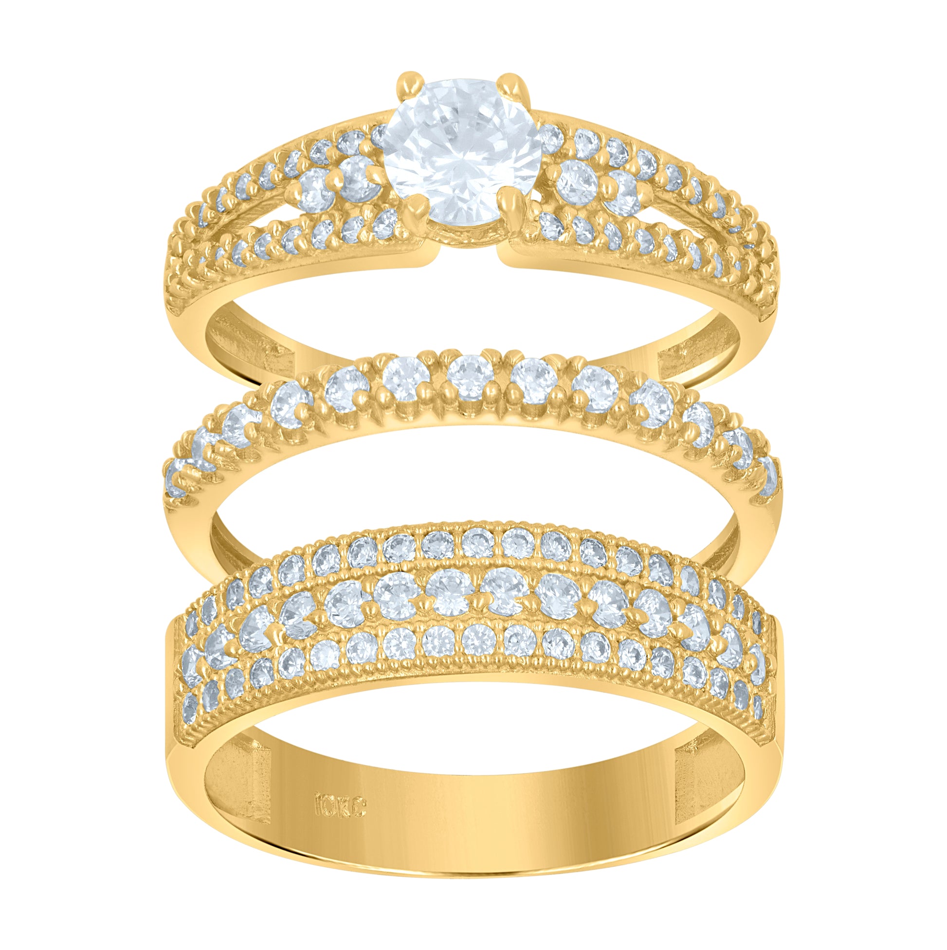 10K Two-Tone Gold Womens Round Cubic Zirconia Trio Ring Set