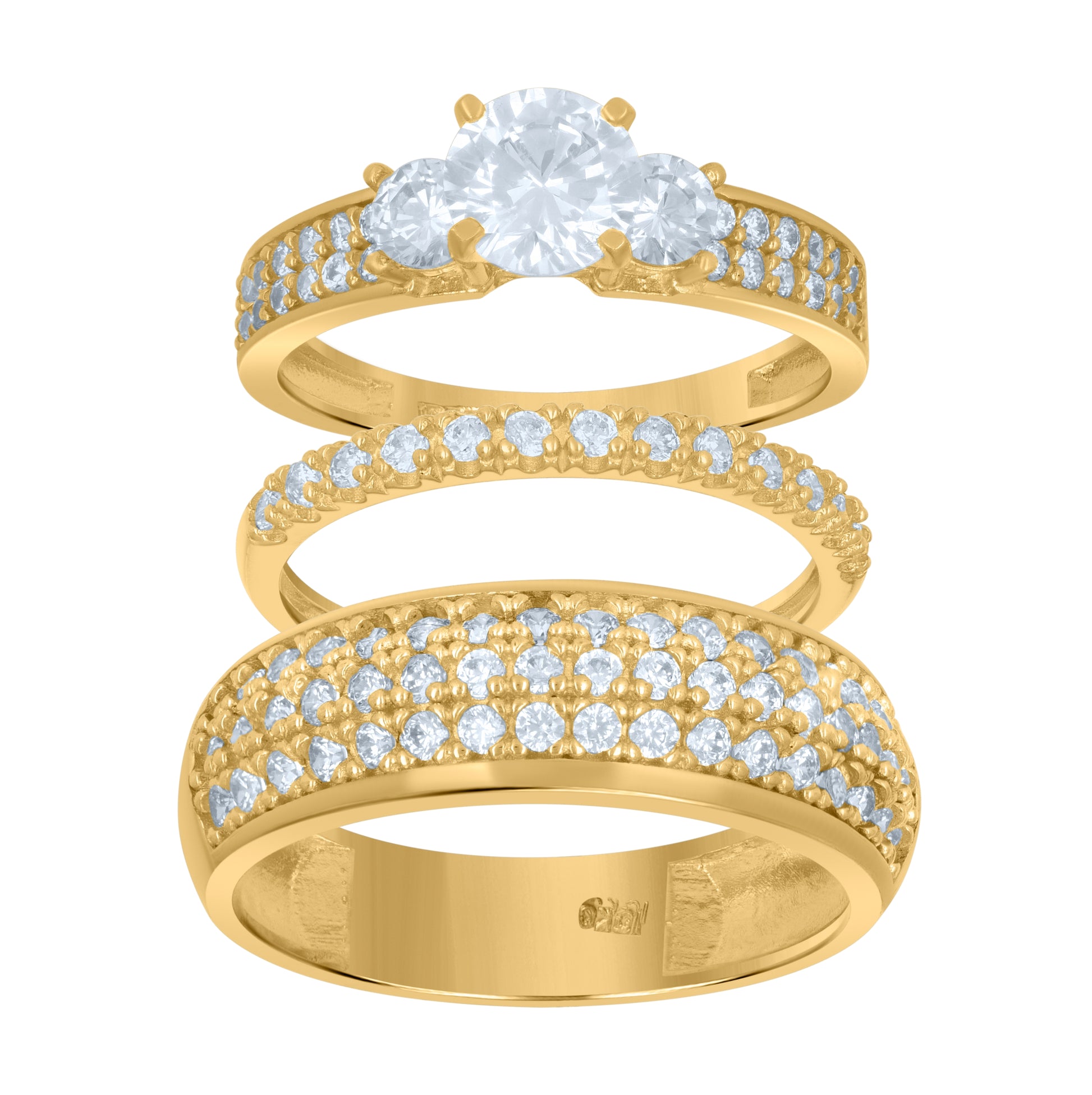 10K Two-Tone Gold Womens Round Cubic Zirconia Trio Ring Set