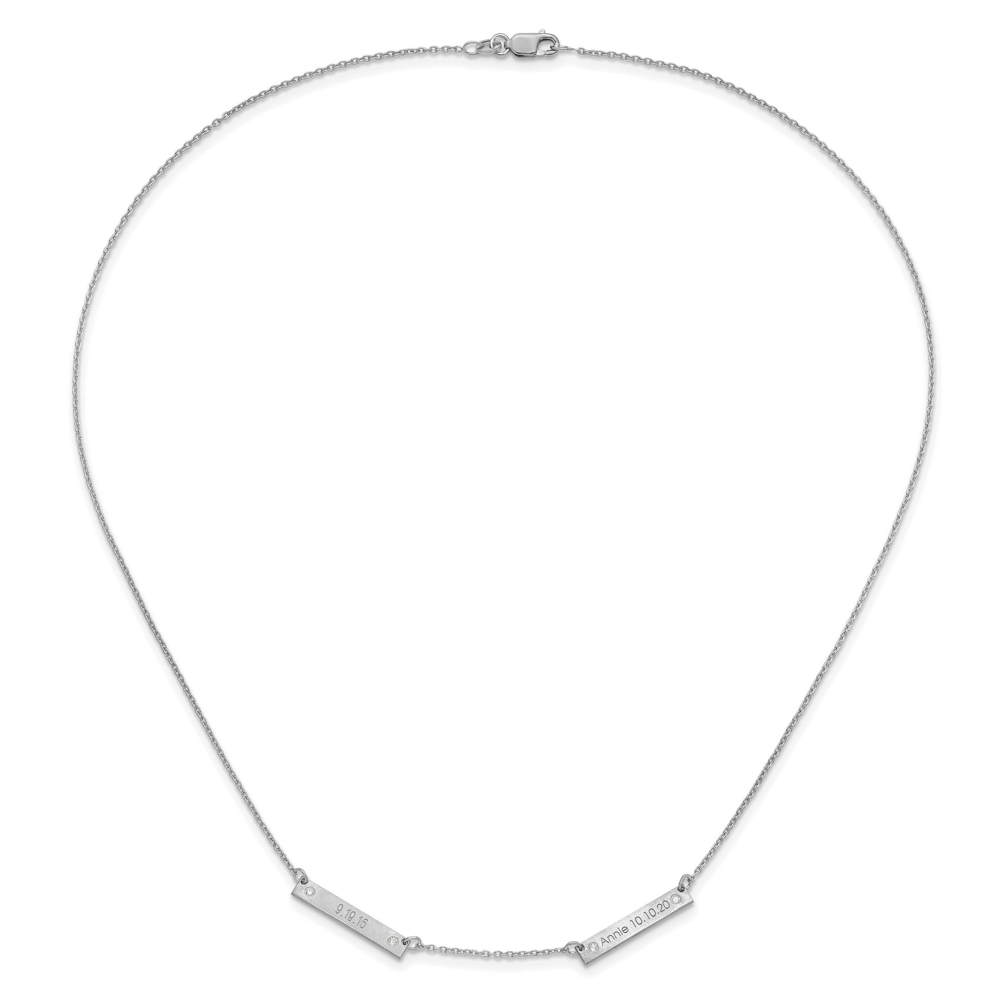 10K White Gold Brushed 2 Station with Diamond Necklace