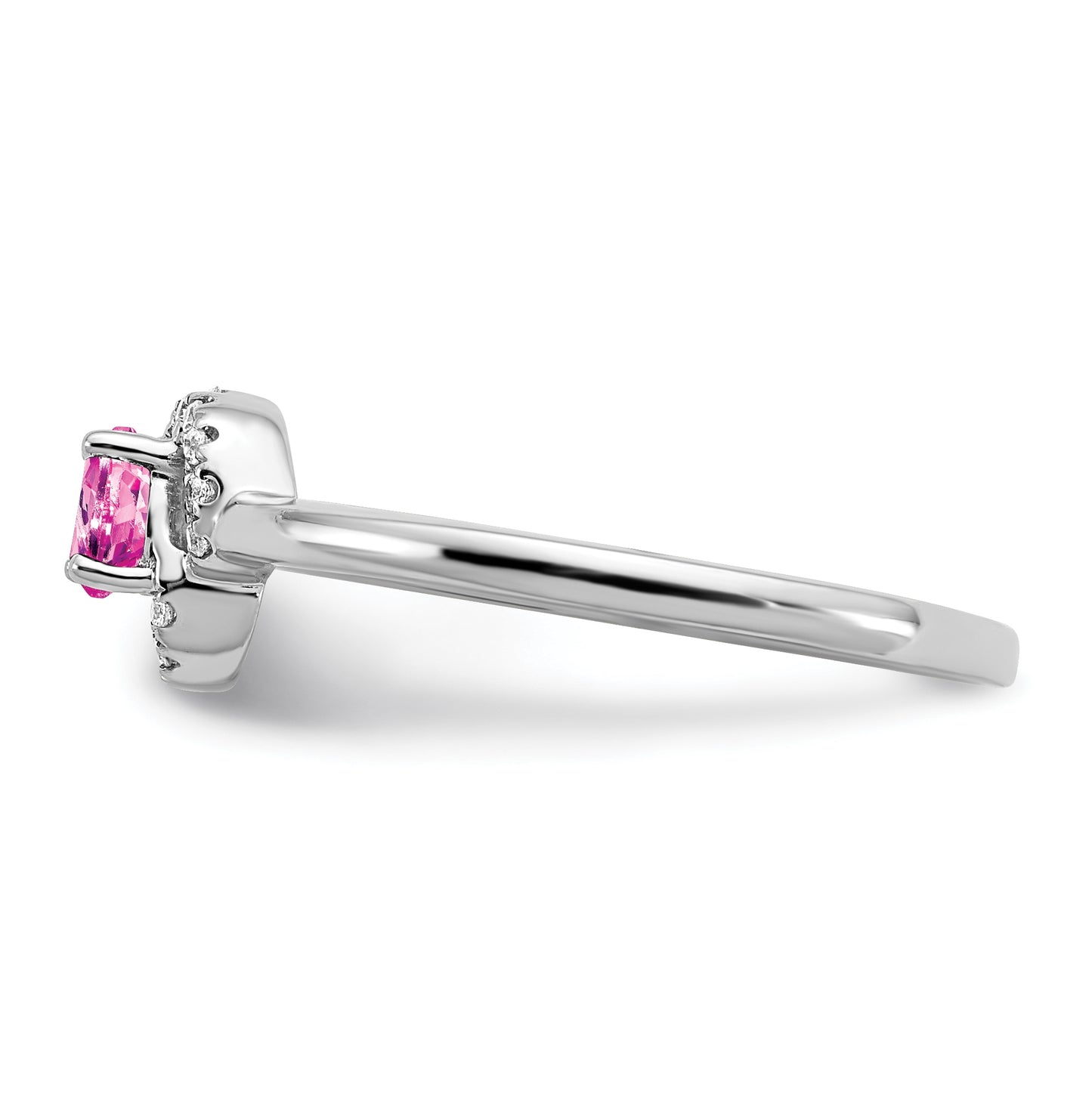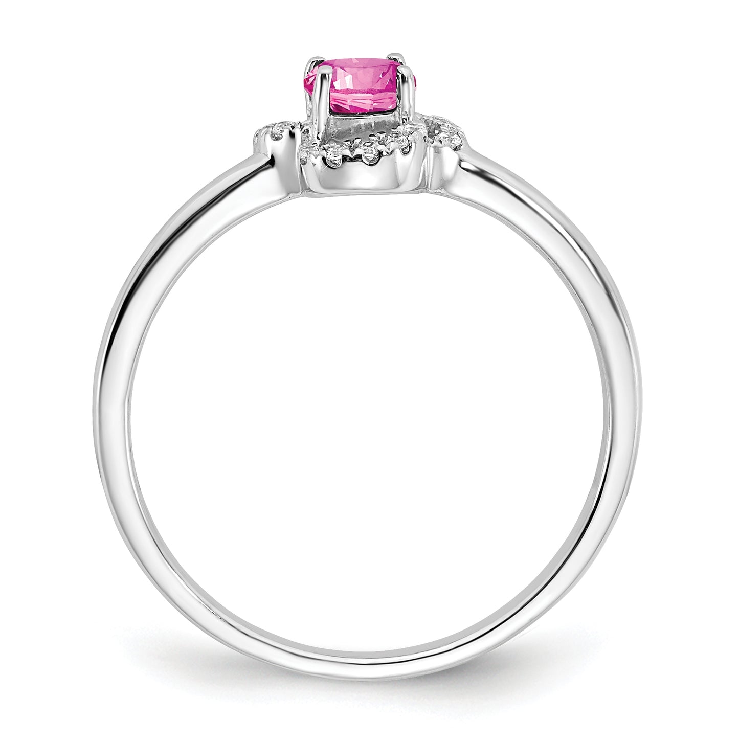 10k White Gold Created Pink Sapphire and Diamond Ring