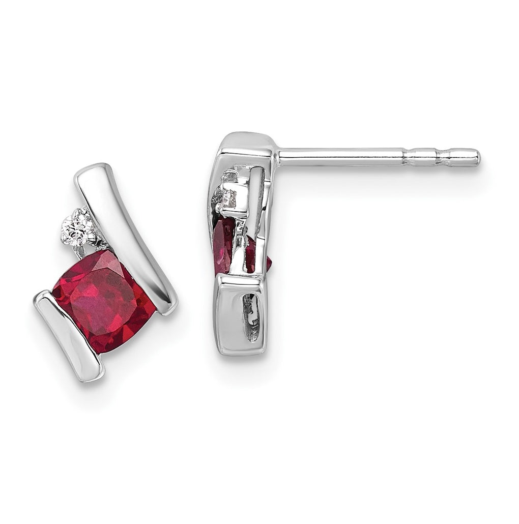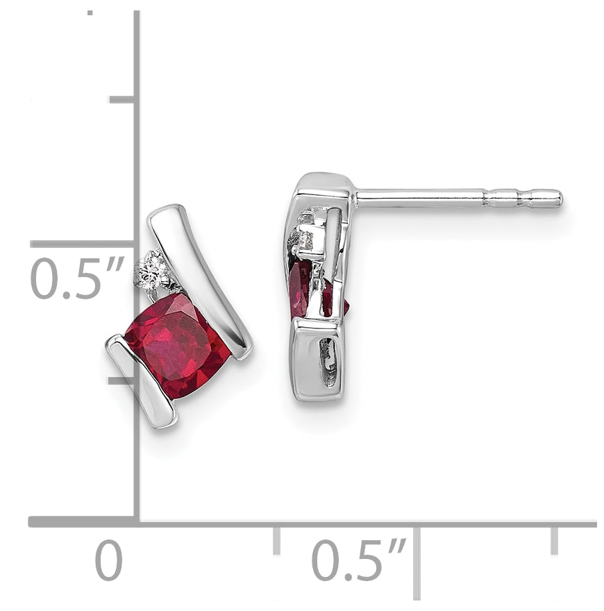 10k White Gold Cushion Cr. Ruby and Diamond Earrings