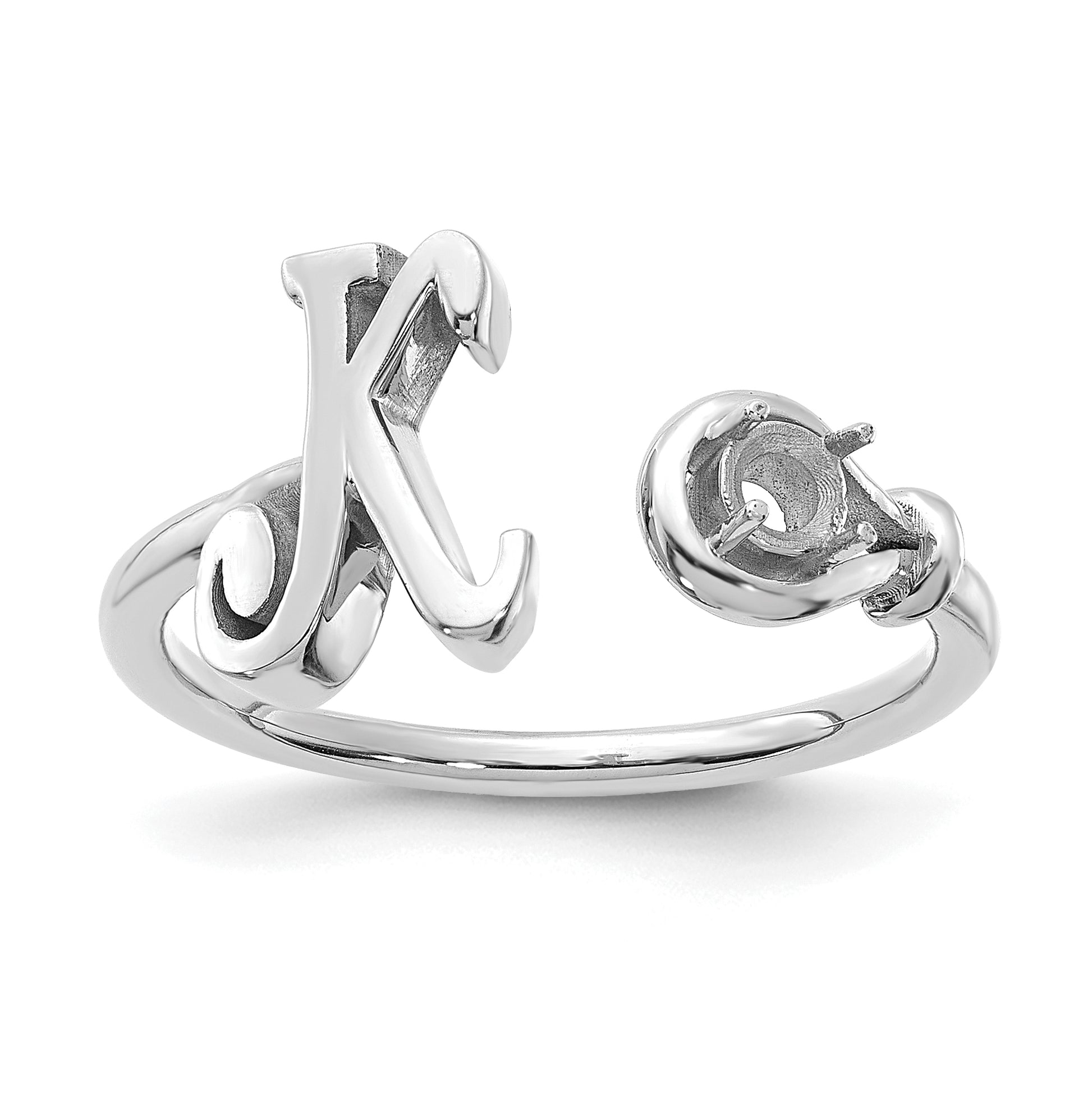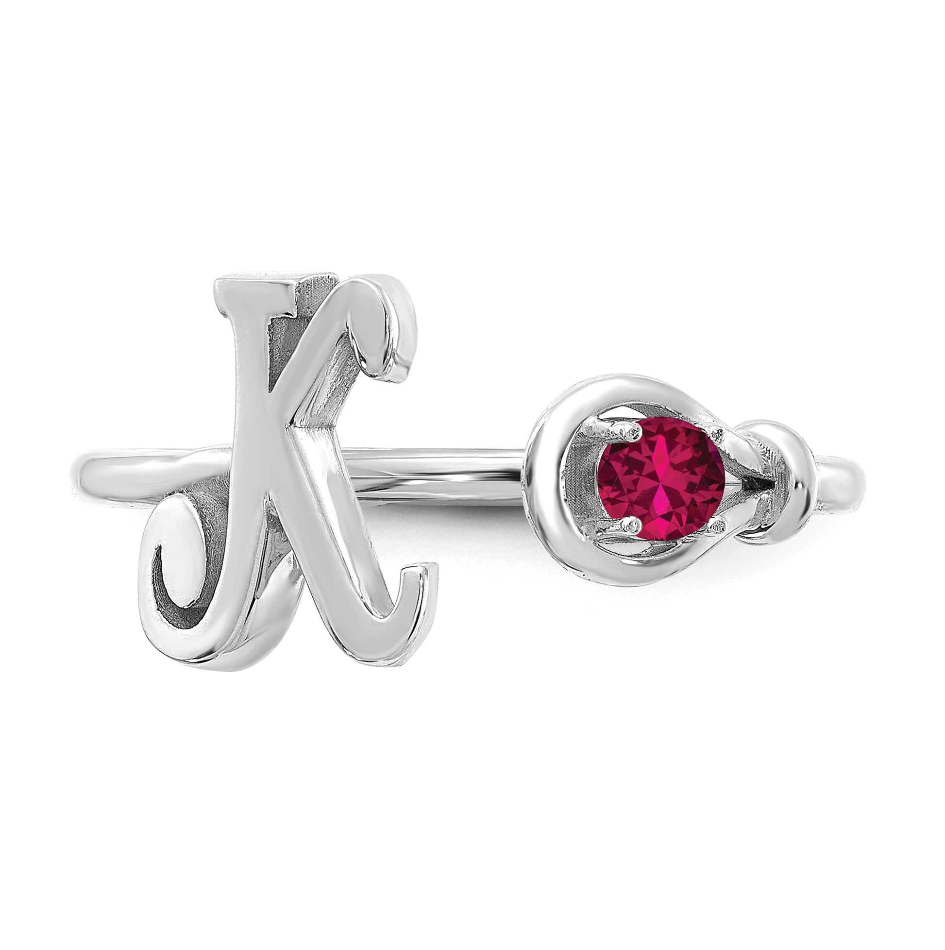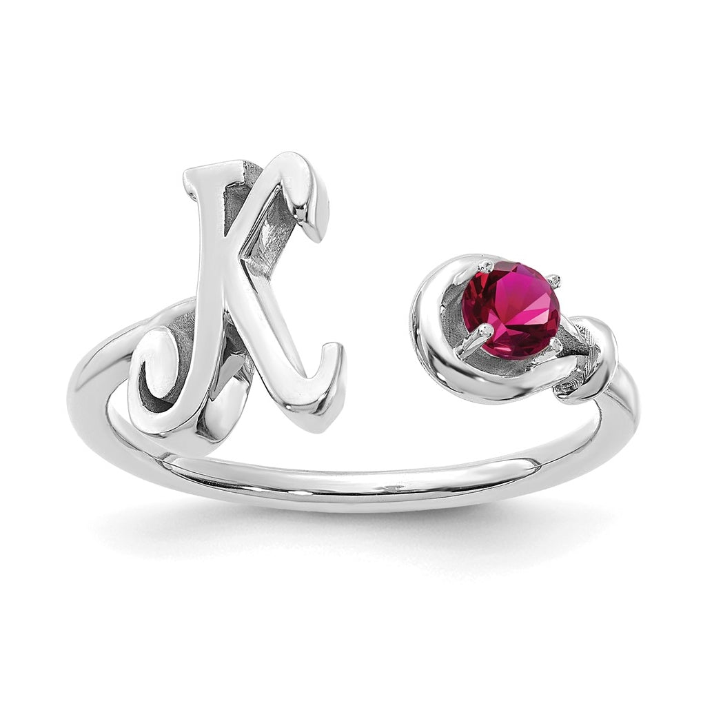 10K White Gold Letter K with Birthstone Ring