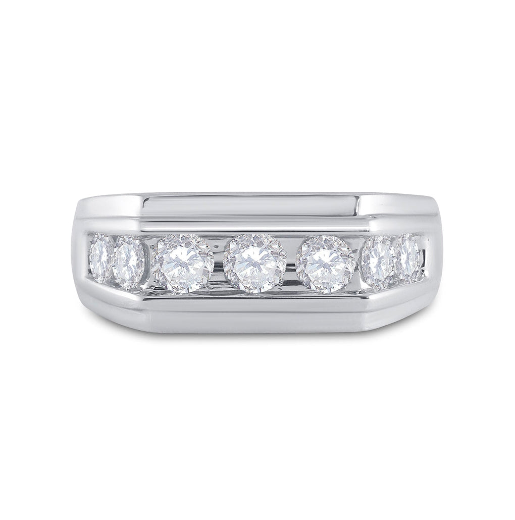 10K White Gold Mens Round Diamond Flat Top Band Ring 1 Cttw, Mens Size: 7-13