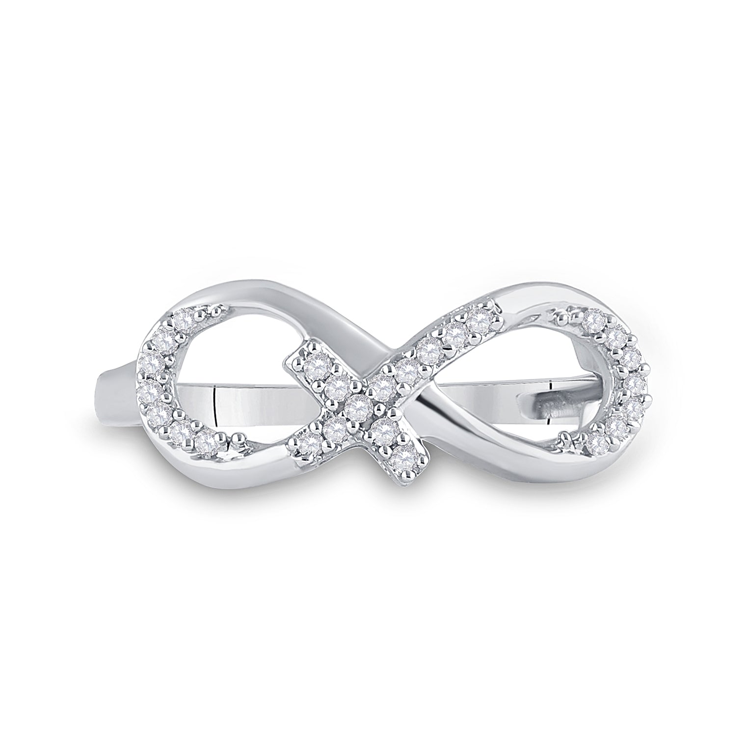 10K White Gold Womens Round Diamond Cross Infinity Ring 1/10 Cttw, Womens Size: 5-10
