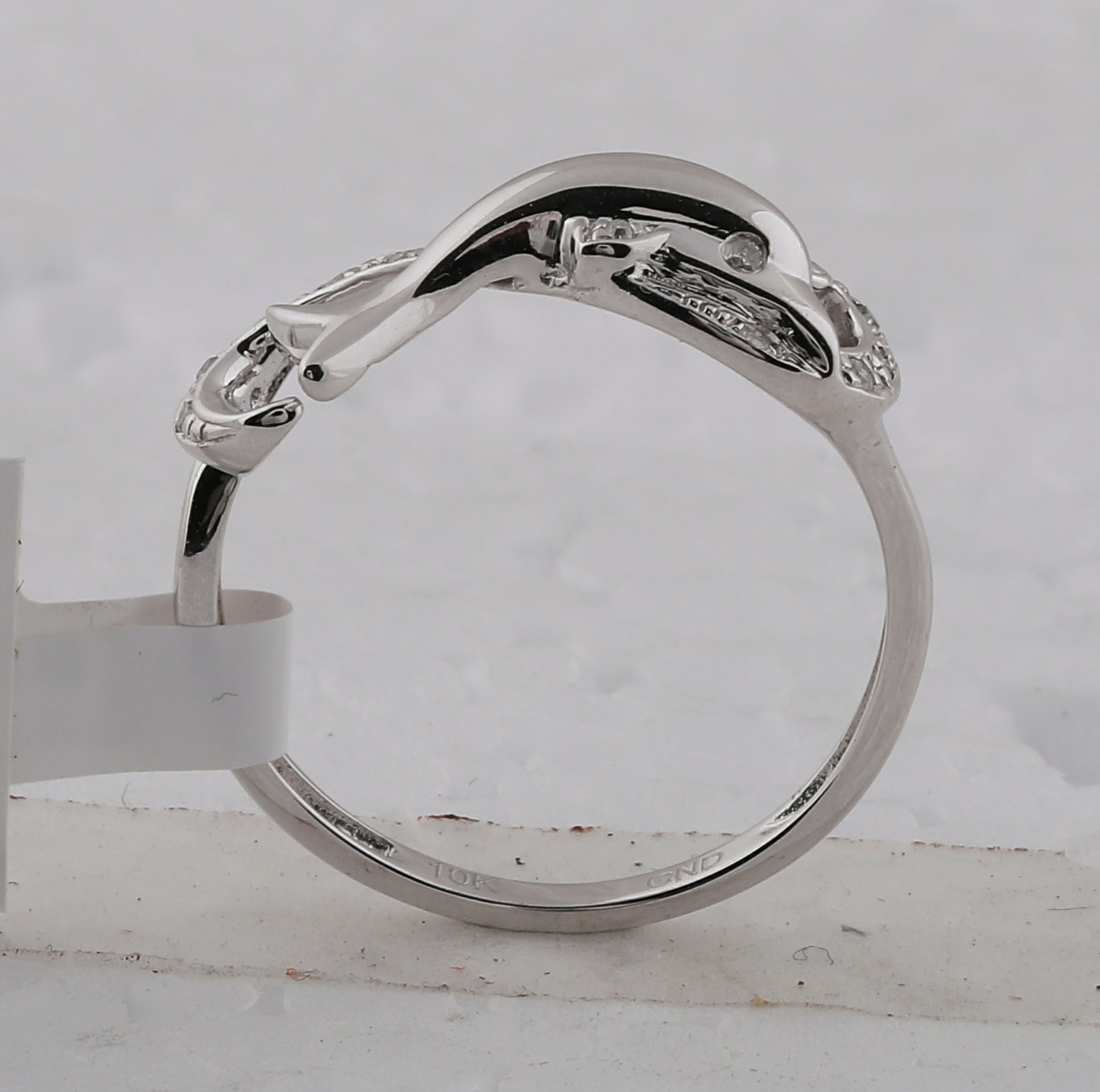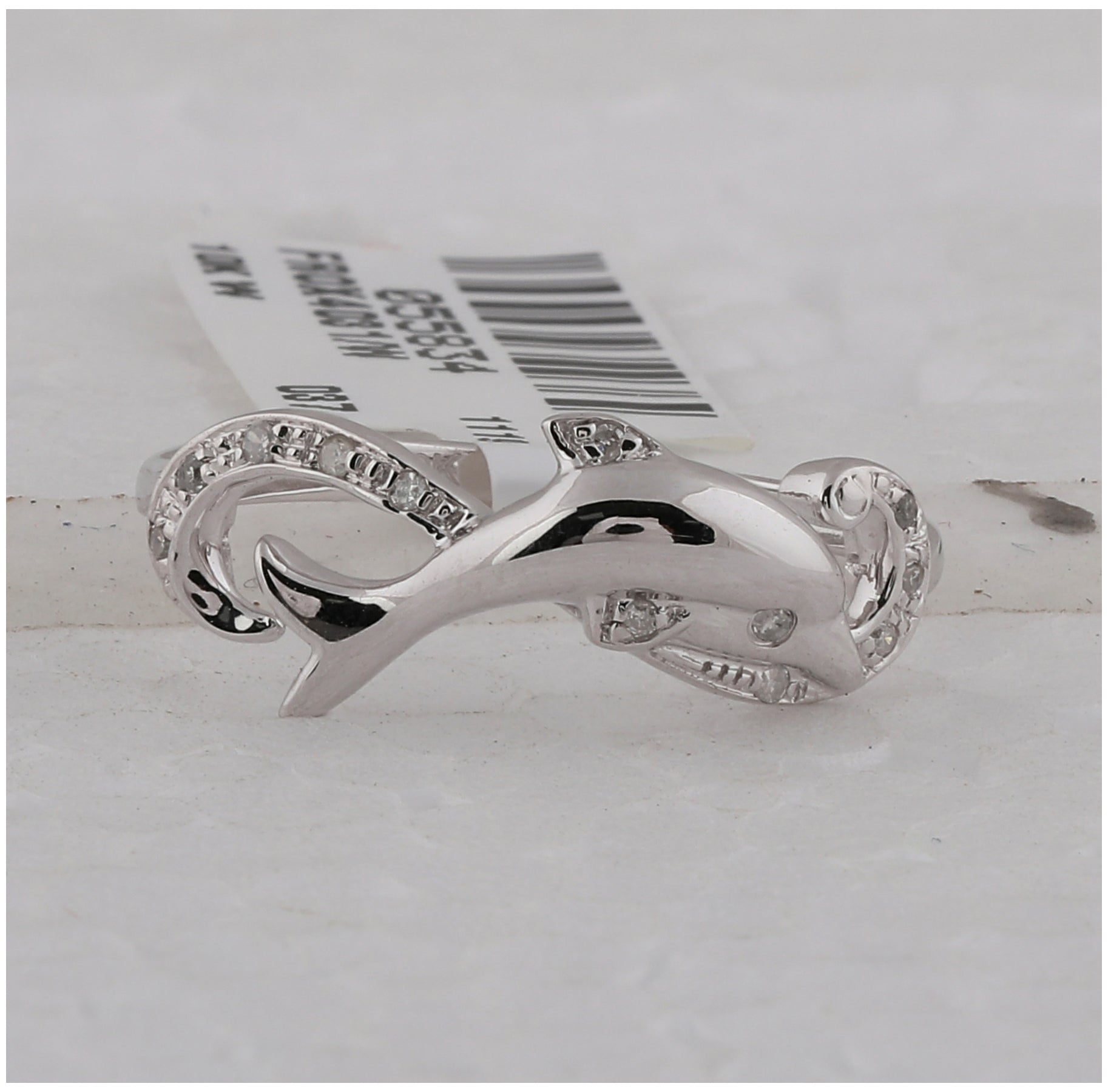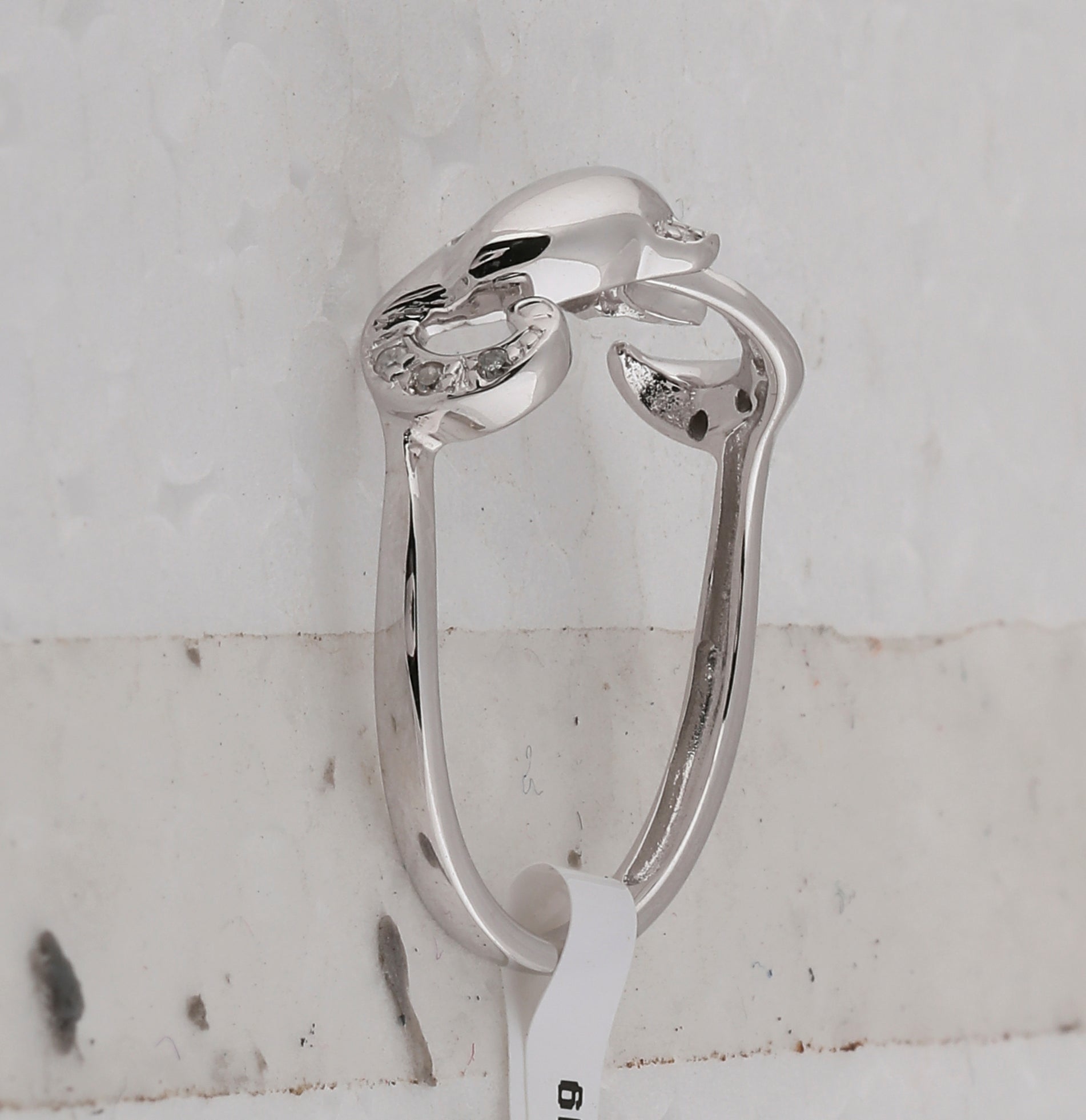10K White Gold Womens Round Diamond Dolphin Ring 1/20 Cttw, Womens Size: 5-10