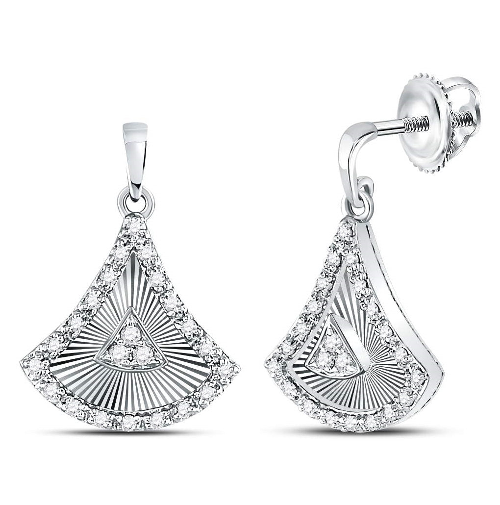 10K White Gold Womens Round Diamond Fan Dangle Earrings 1/5 Cttw