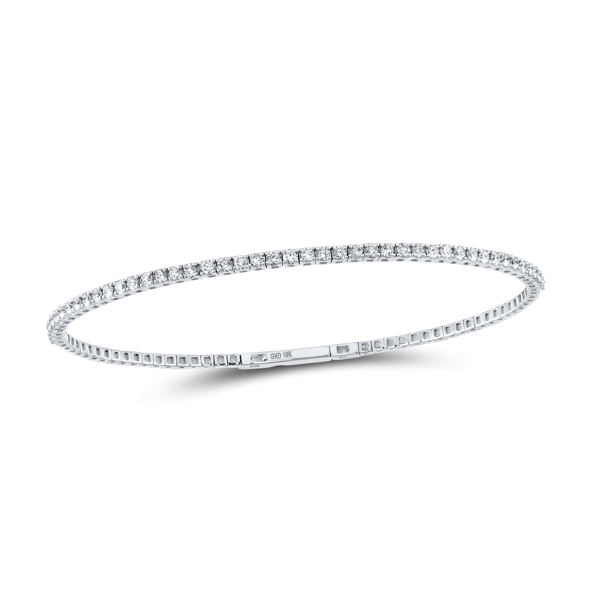 10K White Gold Womens Round Diamond Flexible Bangle Bracelet 1-1/3 Cttw