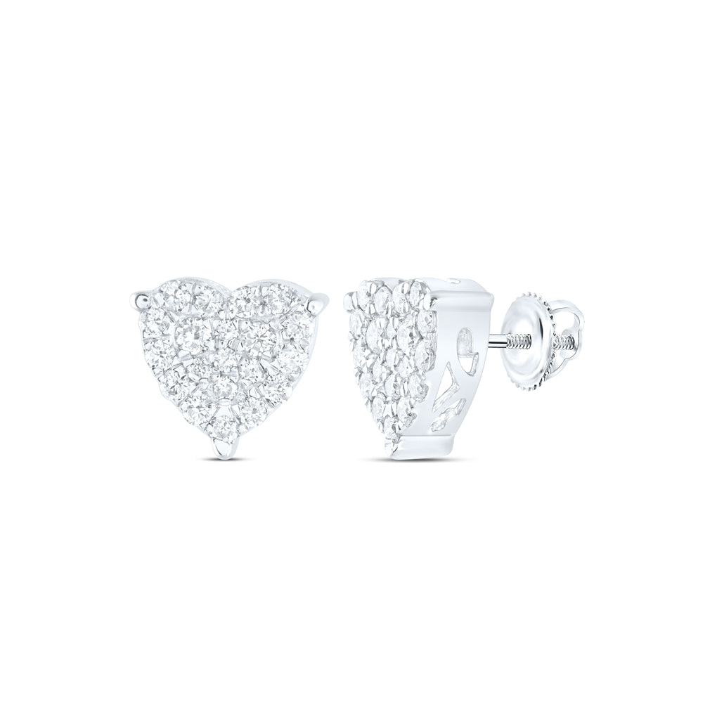 10K White Gold Womens Round Diamond Heart Cluster Stud Earrings 3/4ctw