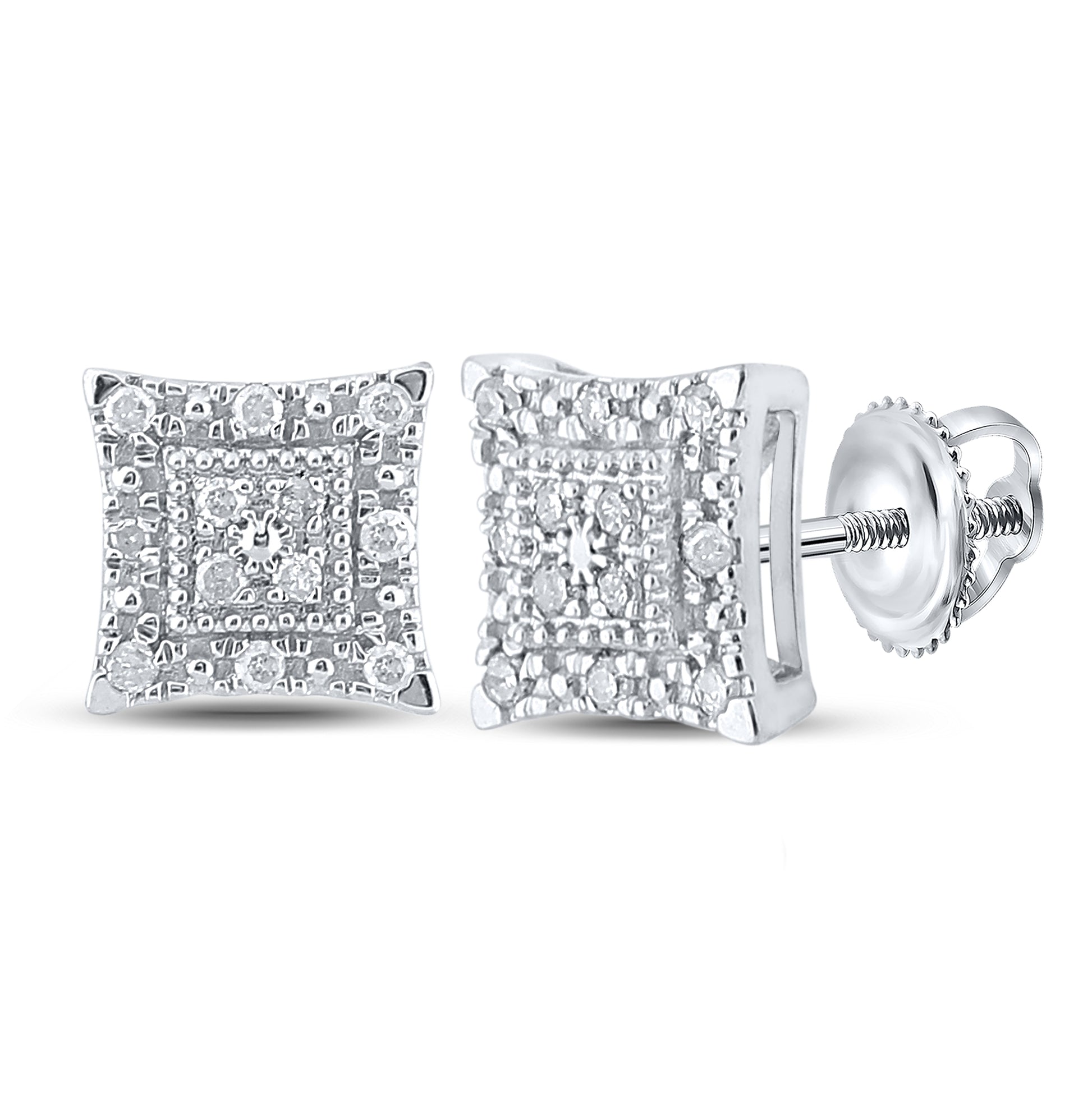 10K White Gold Womens Round Diamond Square Earrings 1/8 Cttw