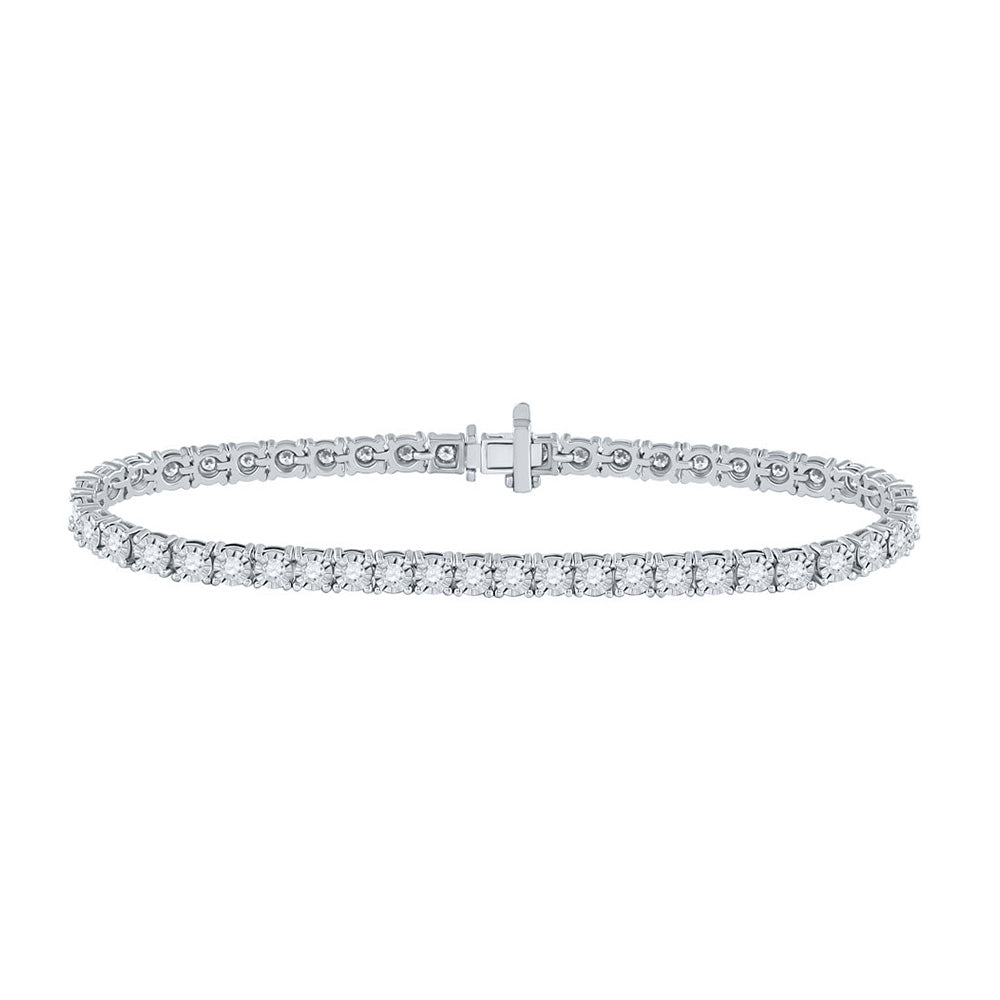10K White Gold Womens Round Diamond Studded Tennis Bracelet 2 Cttw
