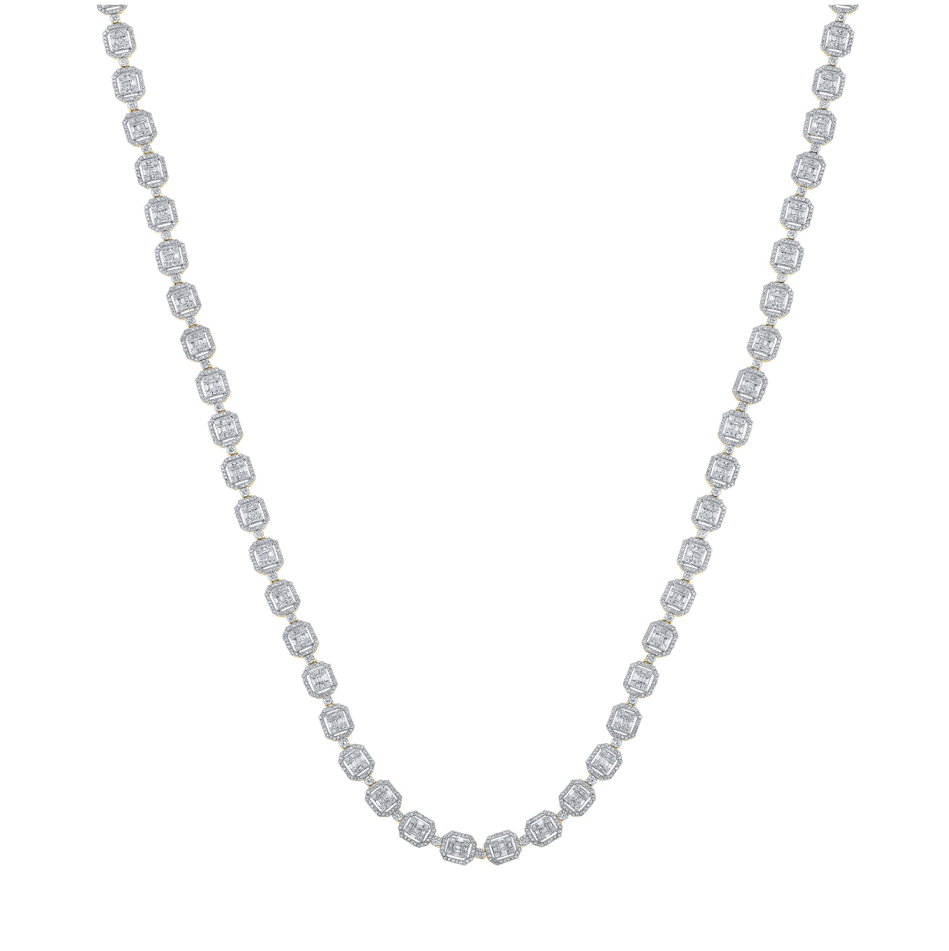 10K White Or Yellow Gold Mens Baguette Diamond 24-inch Link Chain Necklace