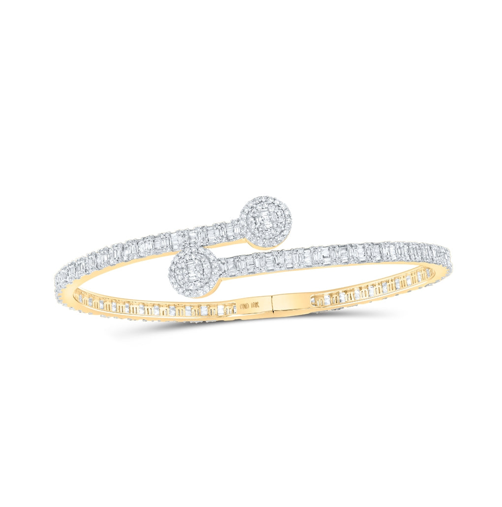 10K White Or Yellow Gold Womens Baguette Diamond Circle Cuff Bangle Bracelet