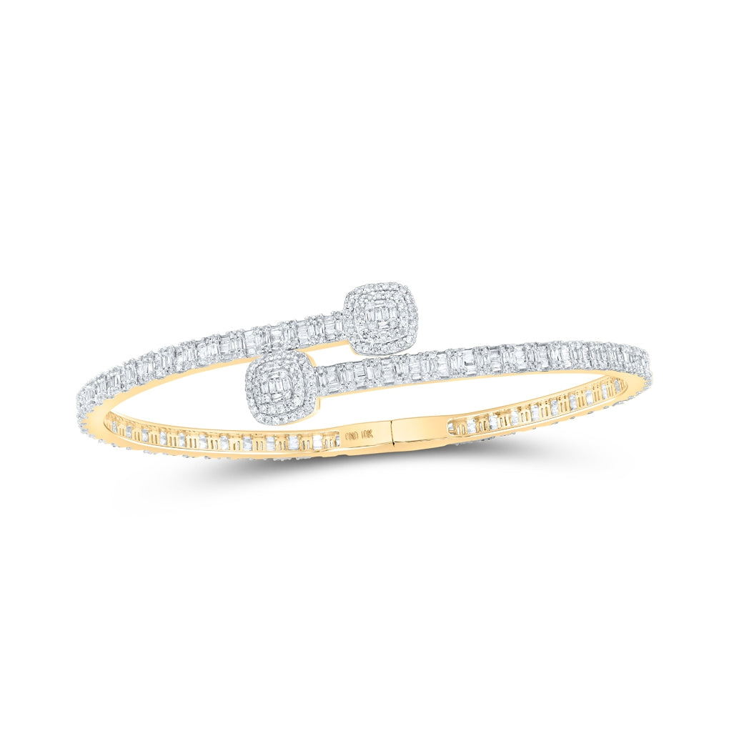 10K White Or Yellow Gold Womens Baguette Diamond Cushion Square Cuff Bangle Bracelet