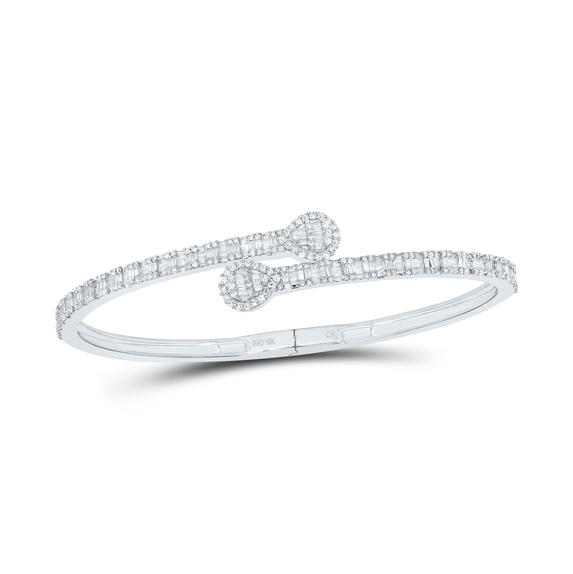 10K White Or Yellow Gold Womens Baguette Diamond Pear Cuff Bangle Bracelet