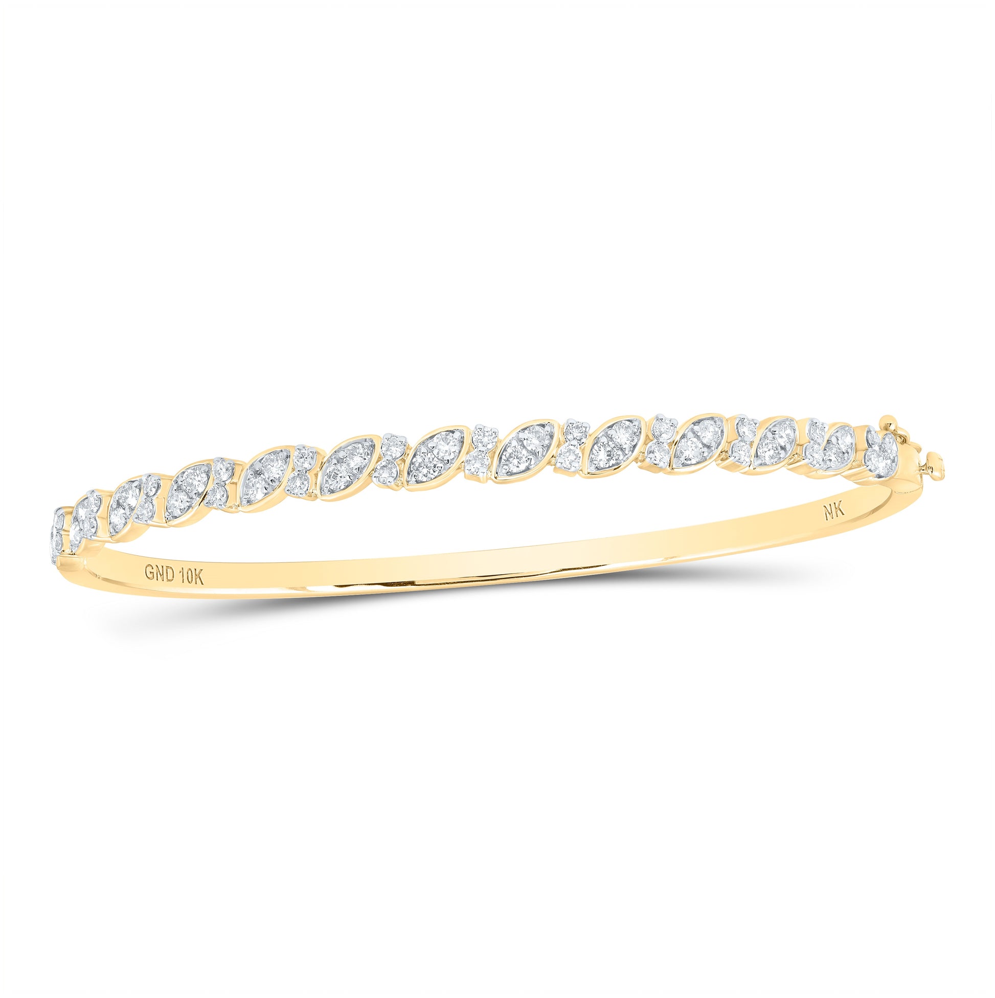 10K White Or Yellow Gold Womens Round Diamond Bangle Bracelet