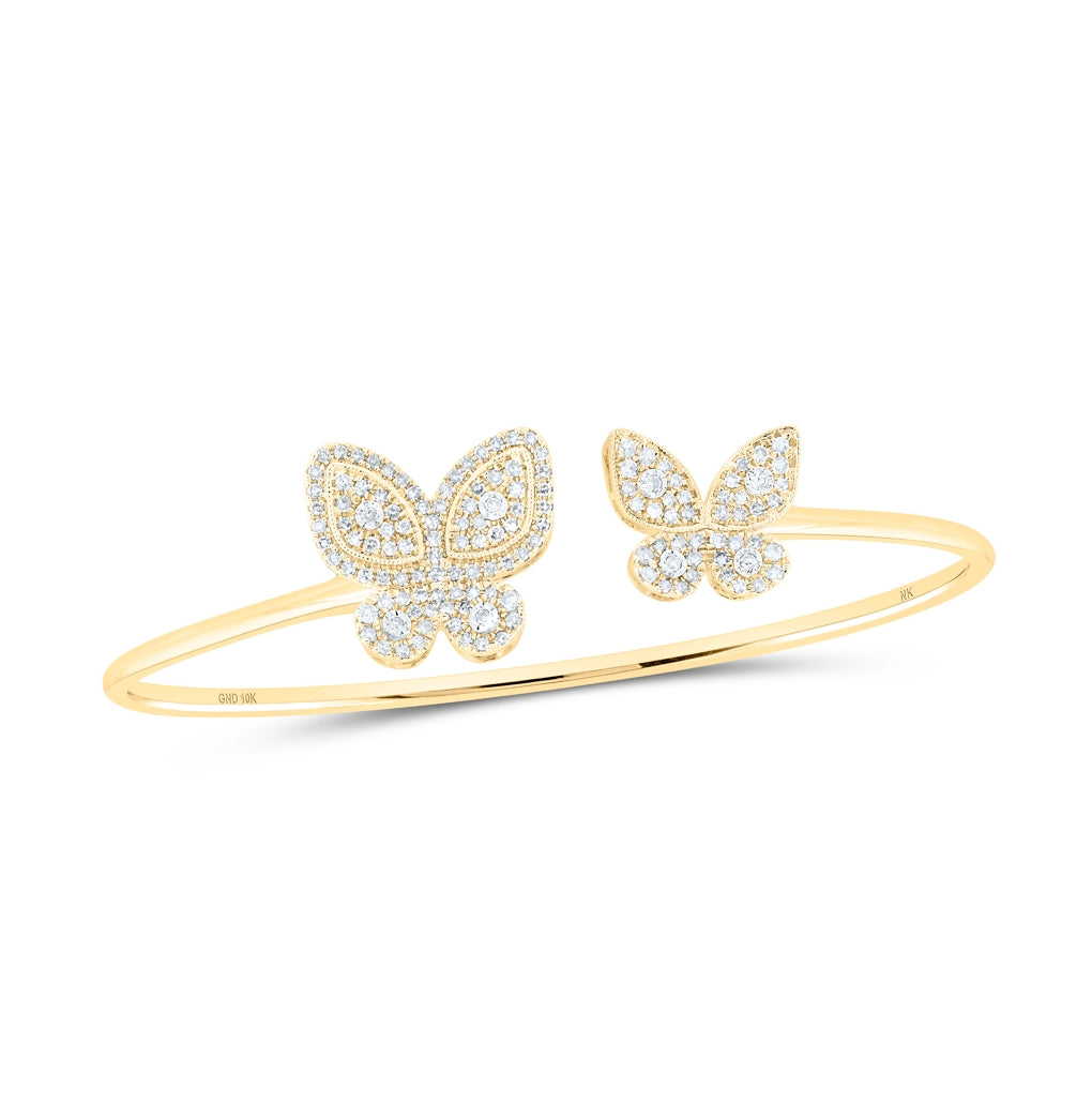 10K White Or Yellow Gold Womens Round Diamond Butterfly Bangle Bracelet