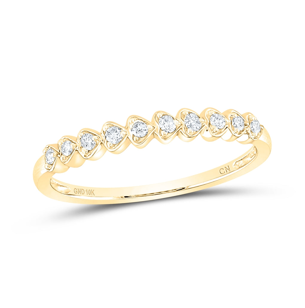 10K White Or Yellow Gold Womens Round Diamond Heart Stackable Band Ring , Womens Size: 5-10