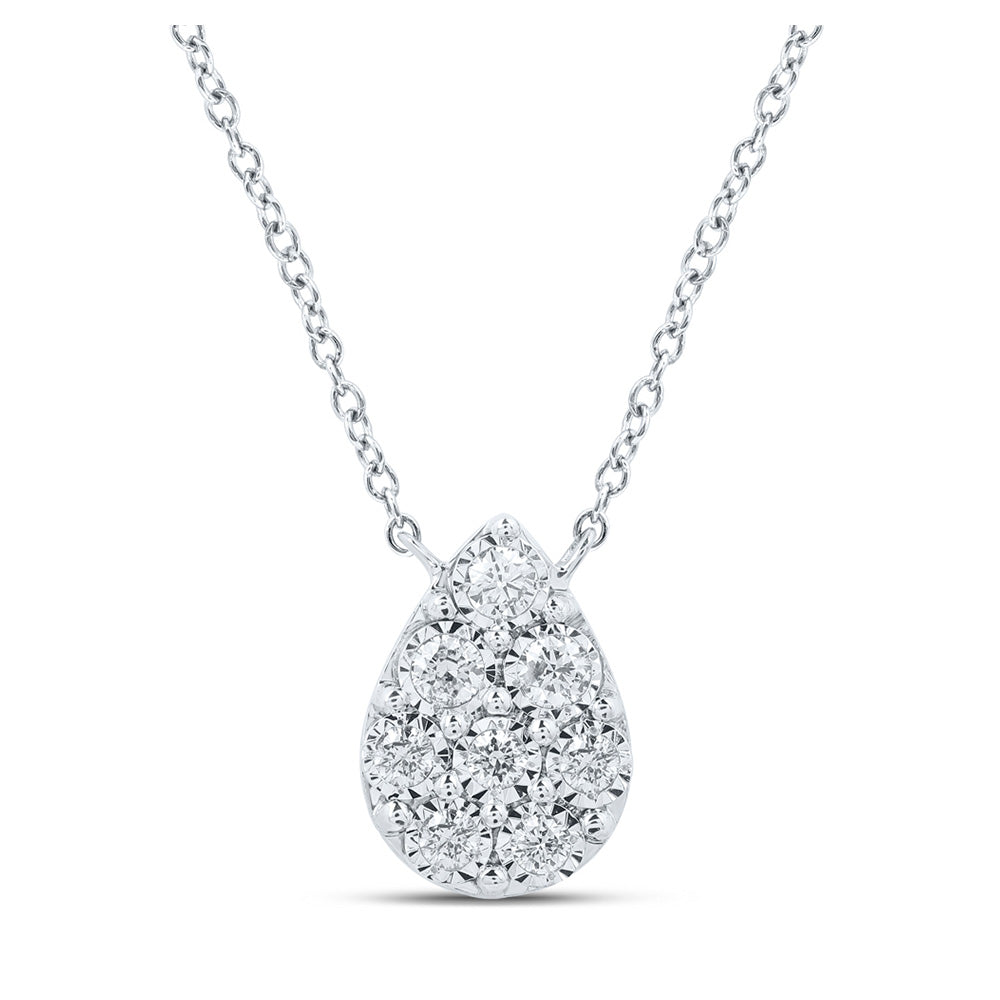 10K White Or Yellow Gold Womens Round Diamond Teardrop Necklace