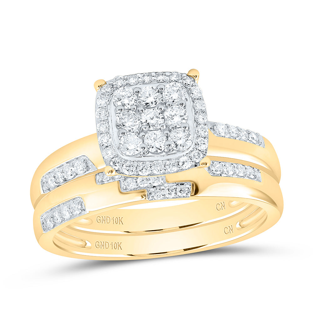 10K Yellow Gold 5/8 Ctw Natural Diamond Fashion Cushion Trio Set, Womens Size: 5-9, Mens Size: 8-12