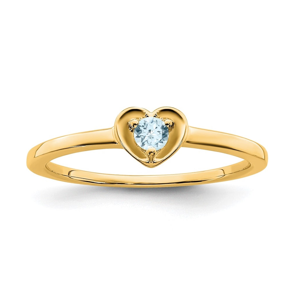 10k Yellow Gold Aquamarine Heart Ring, Size 7