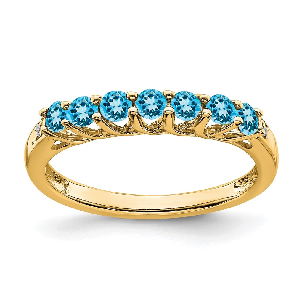 10K Yellow Gold Blue Topaz and Diamond 7-stone Ring, Size 7