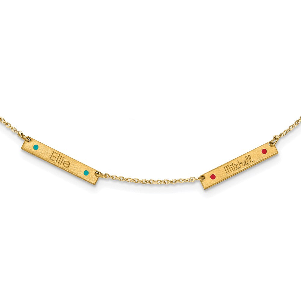 10K Yellow Gold Brushed 2 Station Enameled Necklace