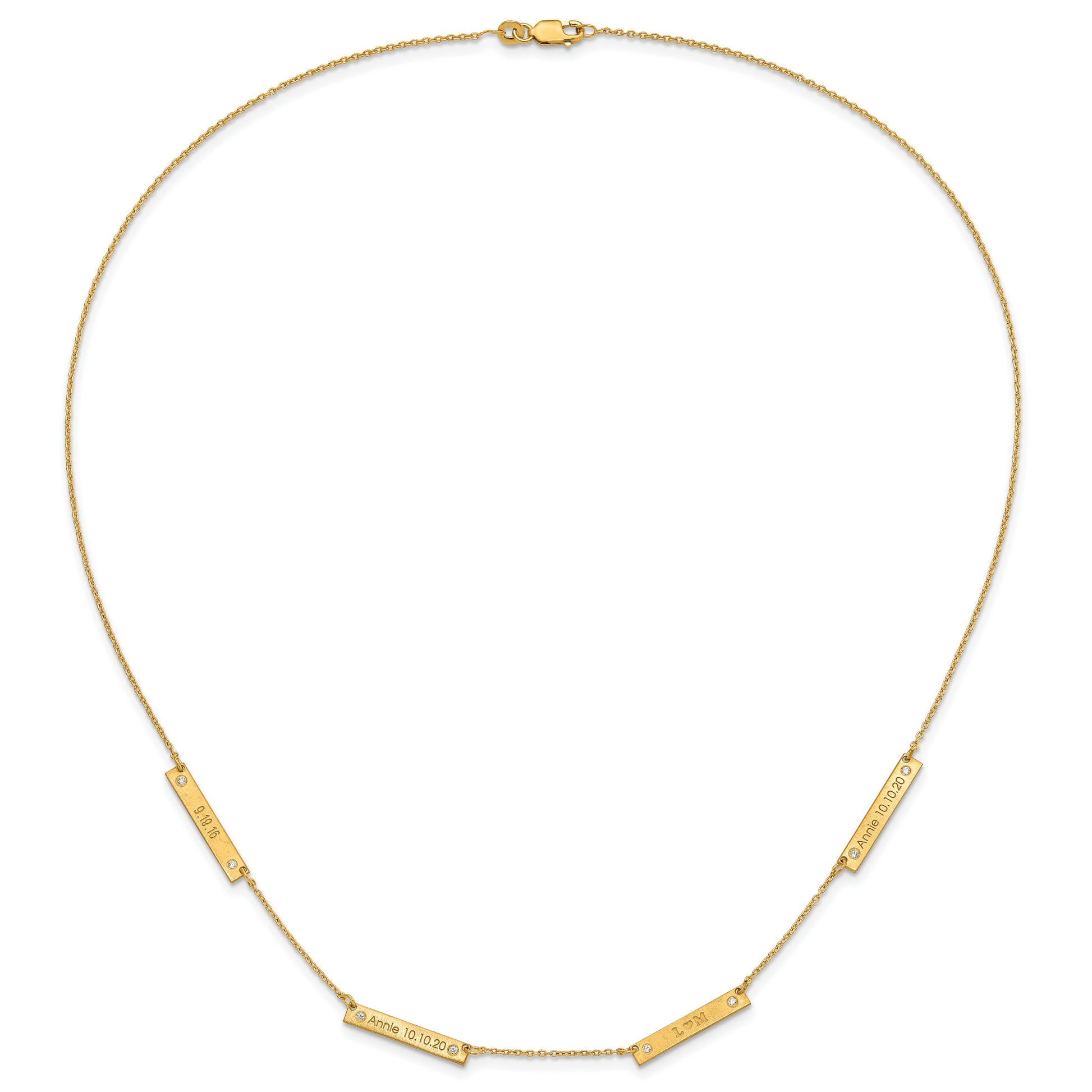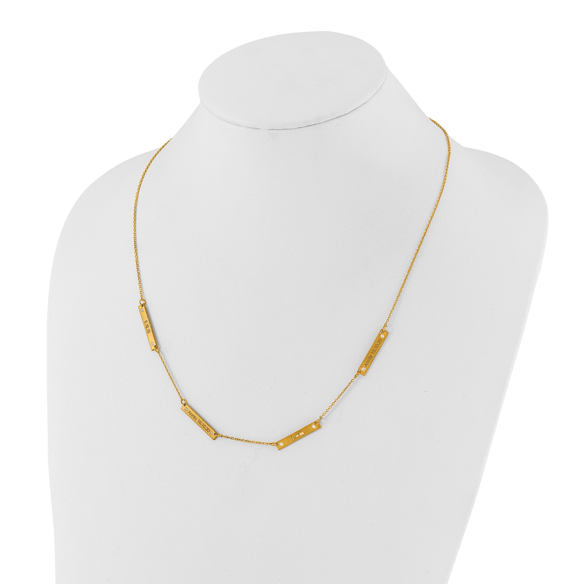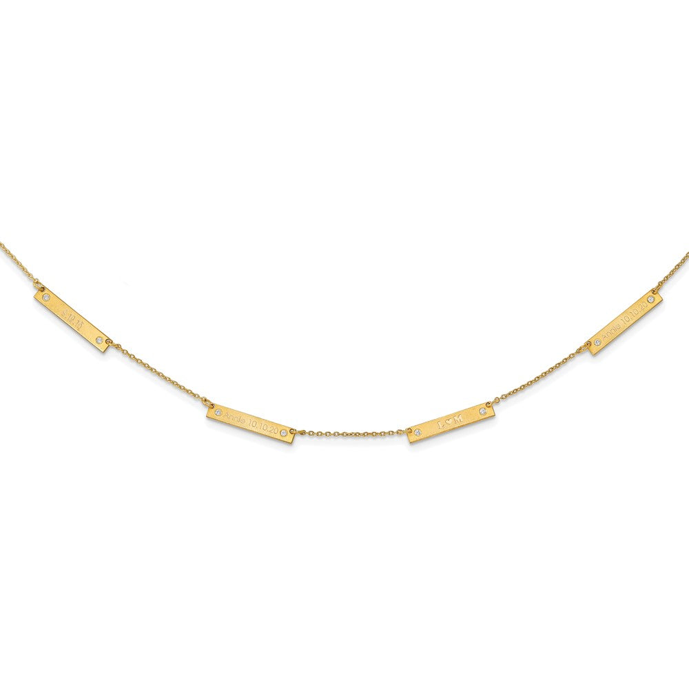 10K Yellow Gold Brushed 4 Station with Diamond Necklace