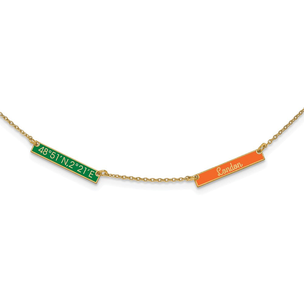 10K Yellow Gold Brushed Enameled 2 Station Necklace