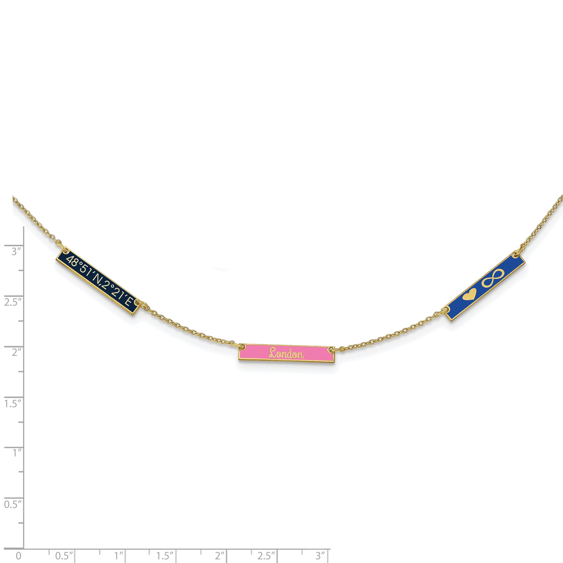10K Yellow Gold Brushed Enameled 3 Station Necklace