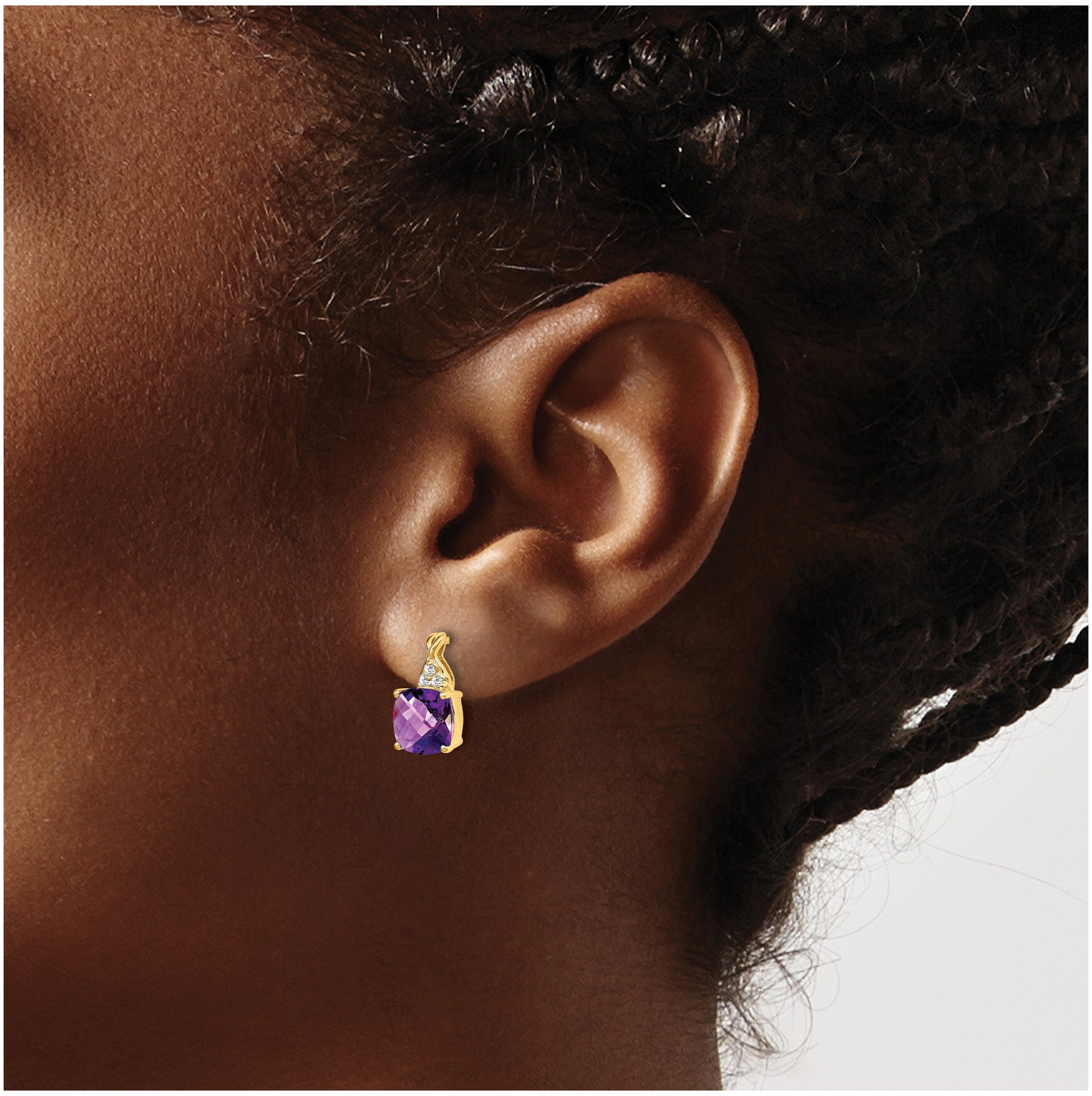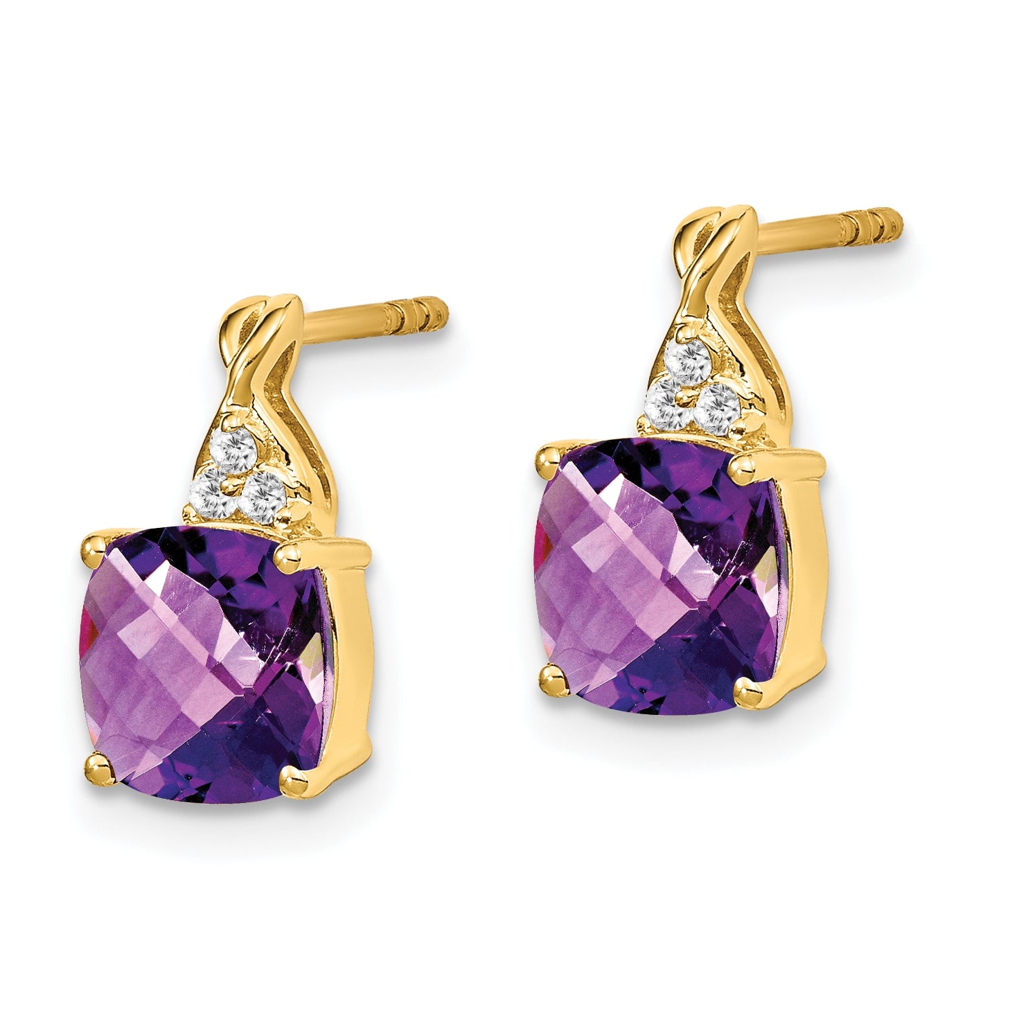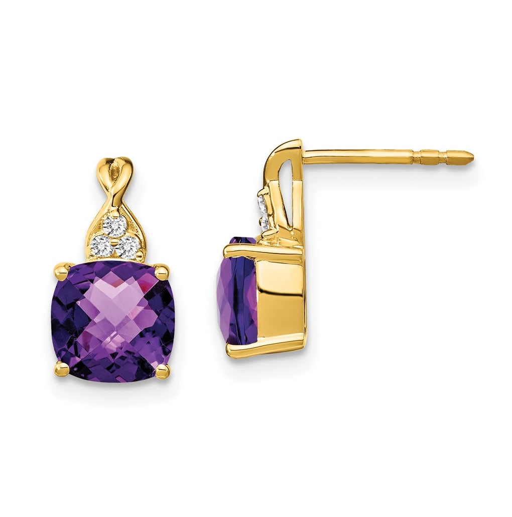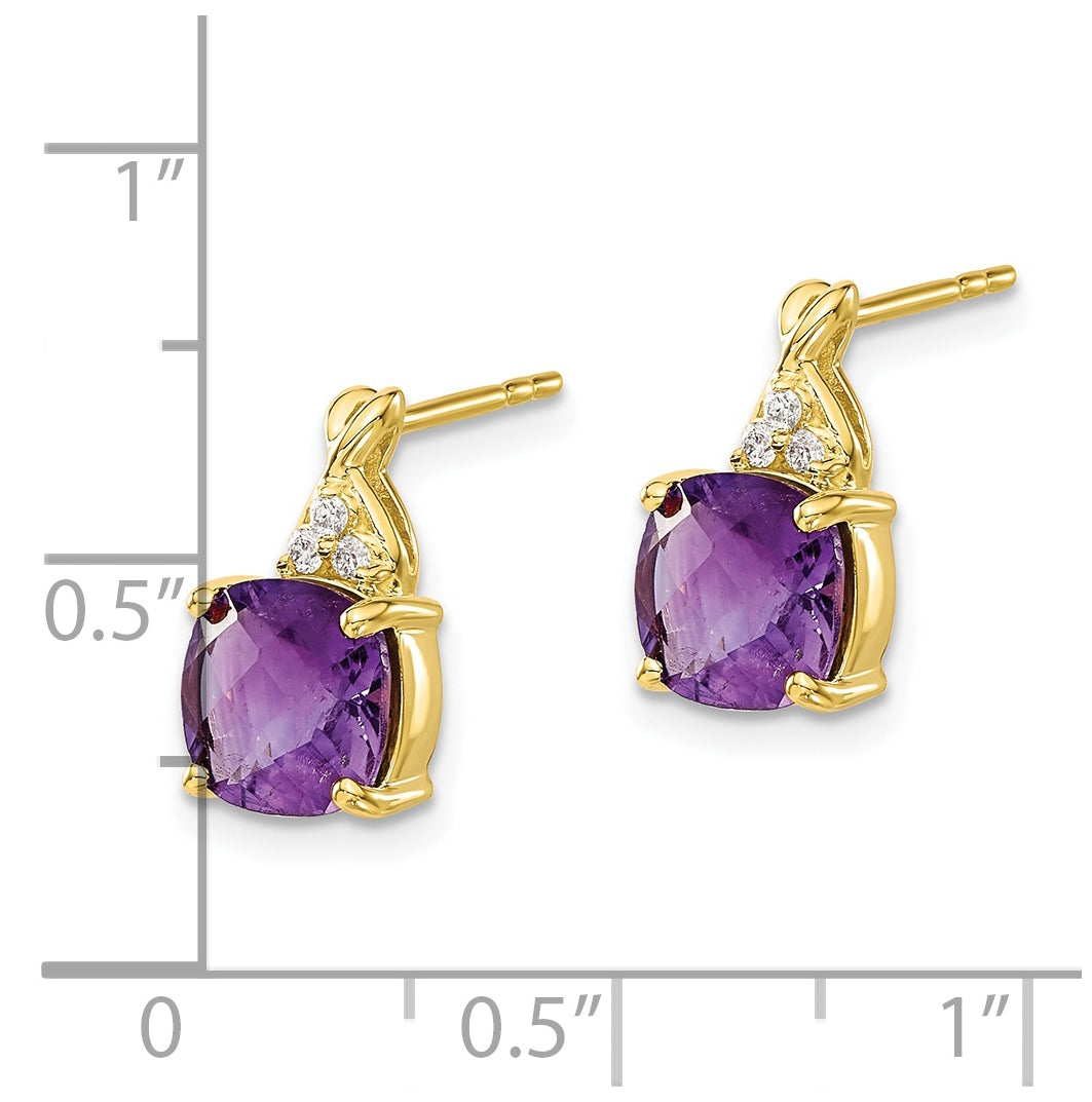10K Yellow Gold Checkerboard Amethyst and Diamond Earrings