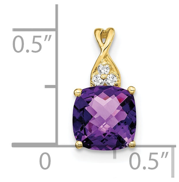 10K Yellow Gold Checkerboard Amethyst and Diamond Pendant