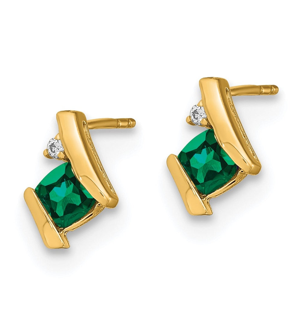 10k Yellow Gold Cushion Cr. Emerald and Diamond Earrings