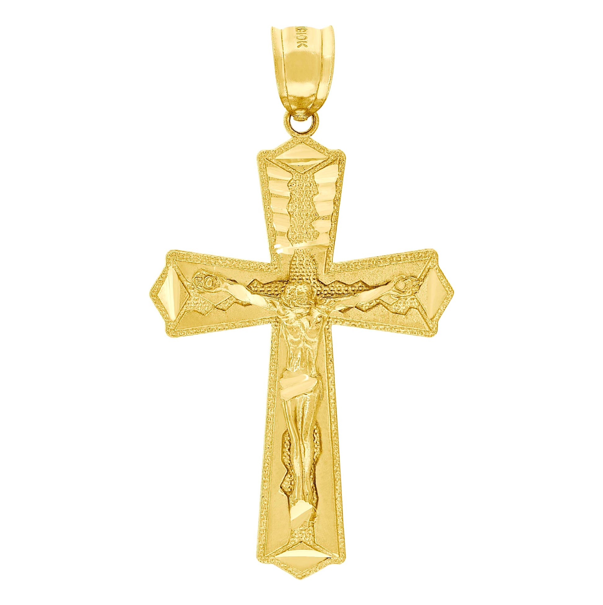 10K Yellow Gold Diamond-Cut Mens Cross Crucifix Religious Charm Pendant