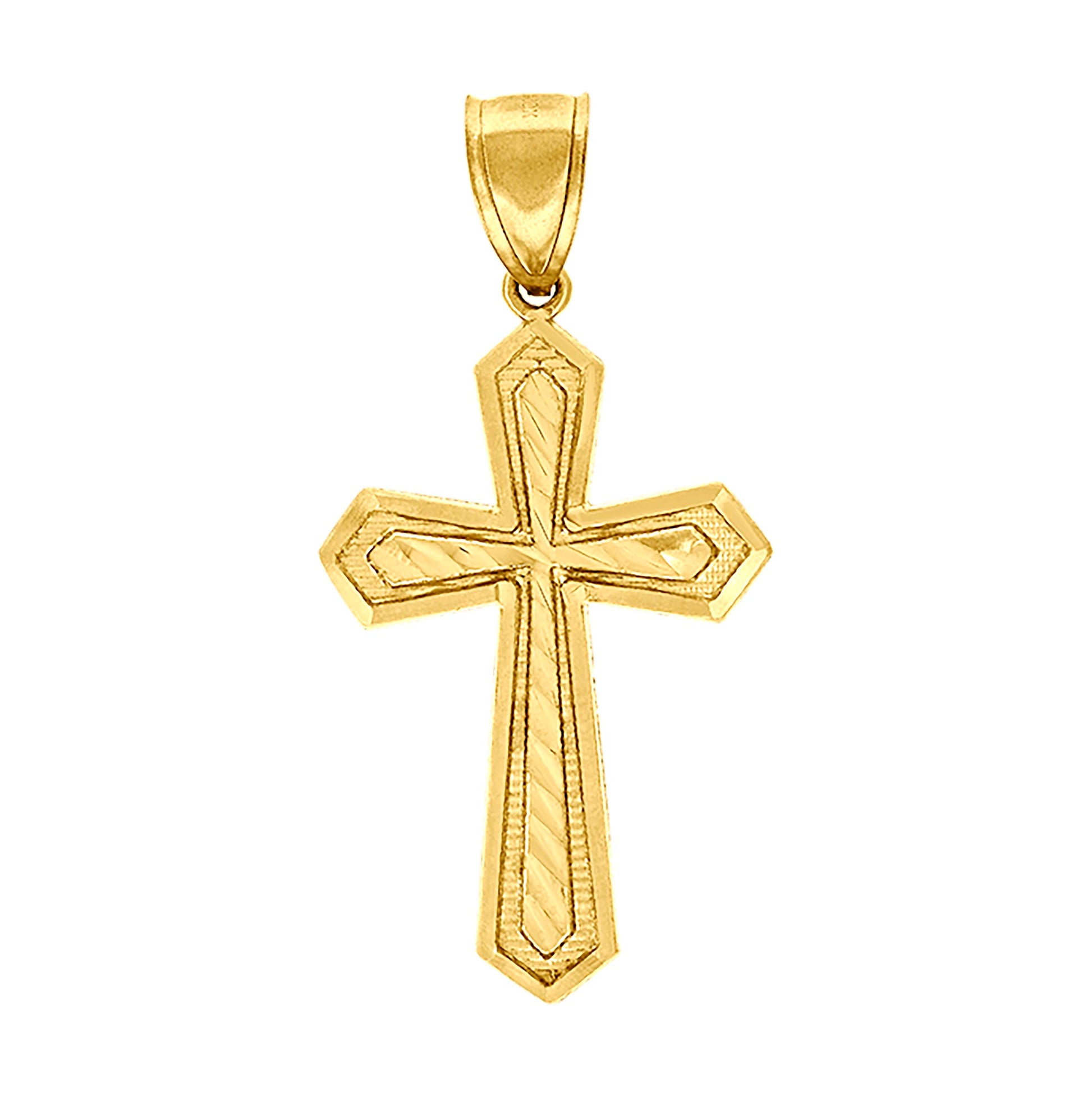 10K Yellow Gold Diamond-Cut Mens Cross Religious Charm Pendant