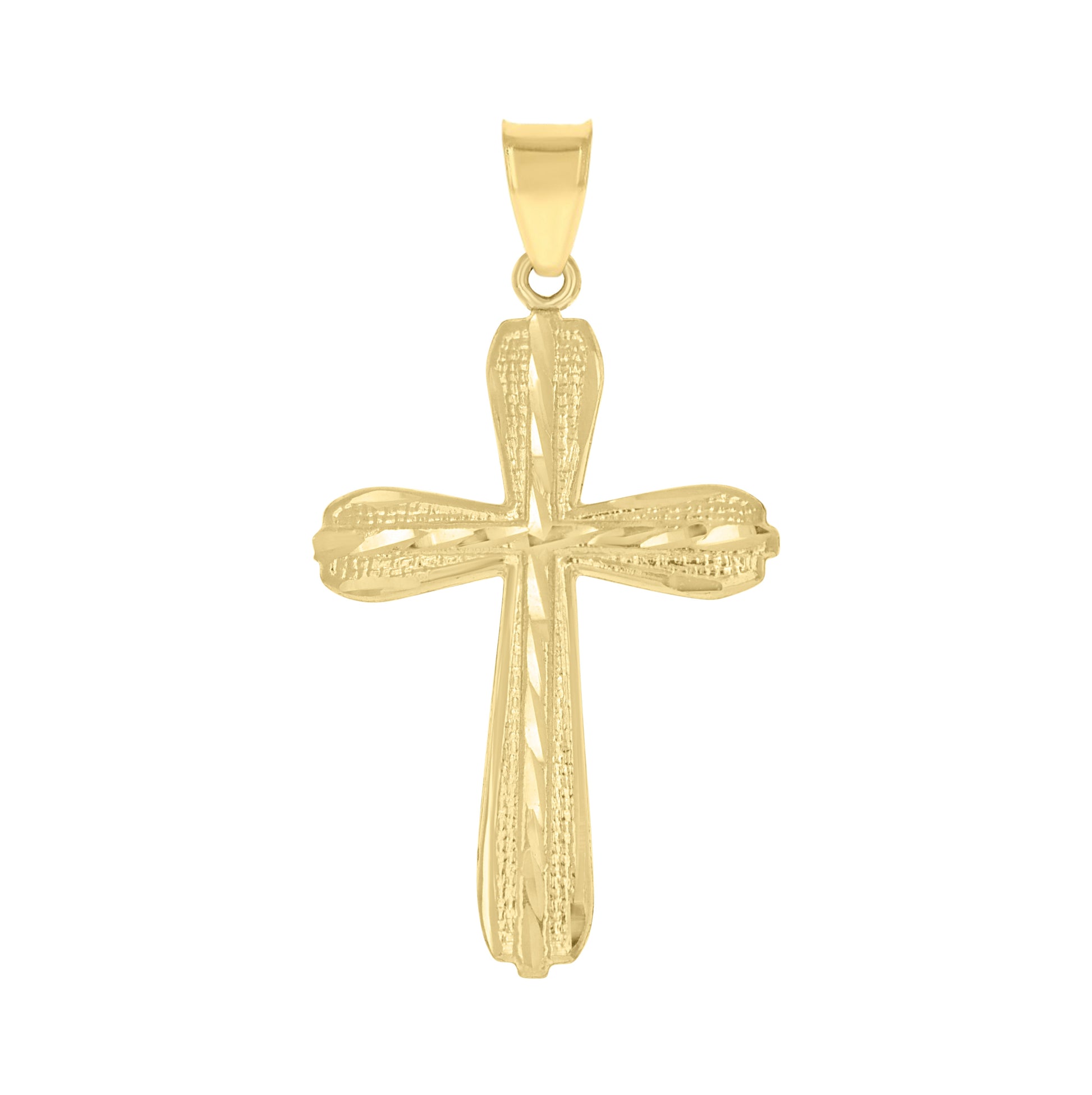10K Yellow Gold Diamond-Cut Mens Cross Religious Charm Pendant