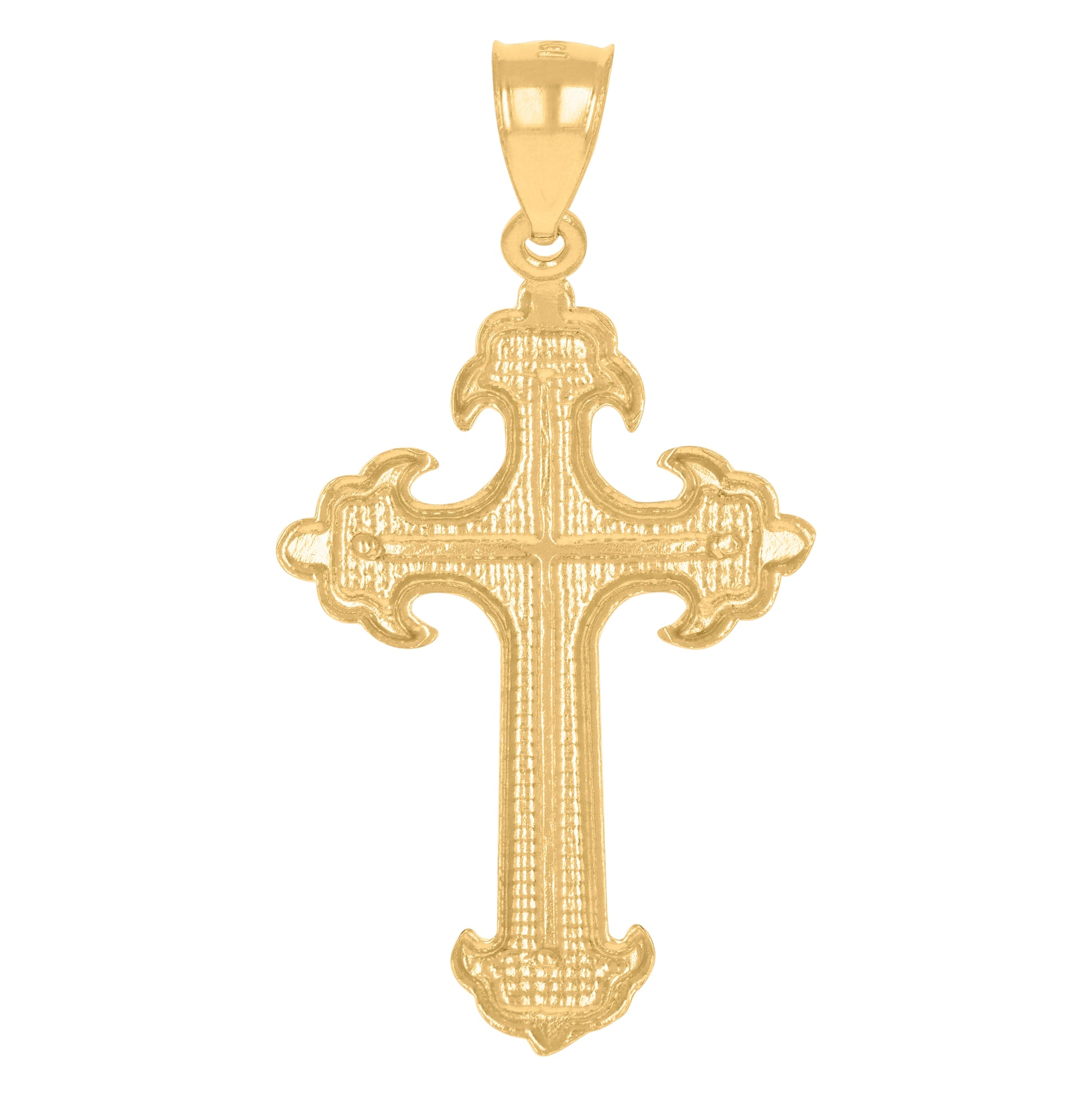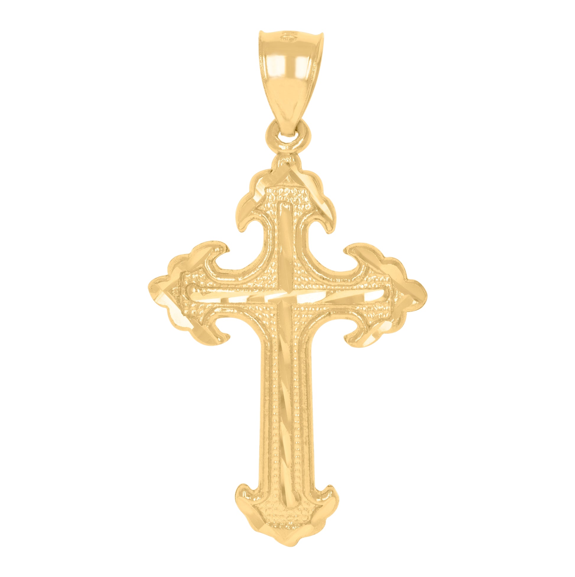 10K Yellow Gold Diamond-Cut Mens Cross Religious Charm Pendant