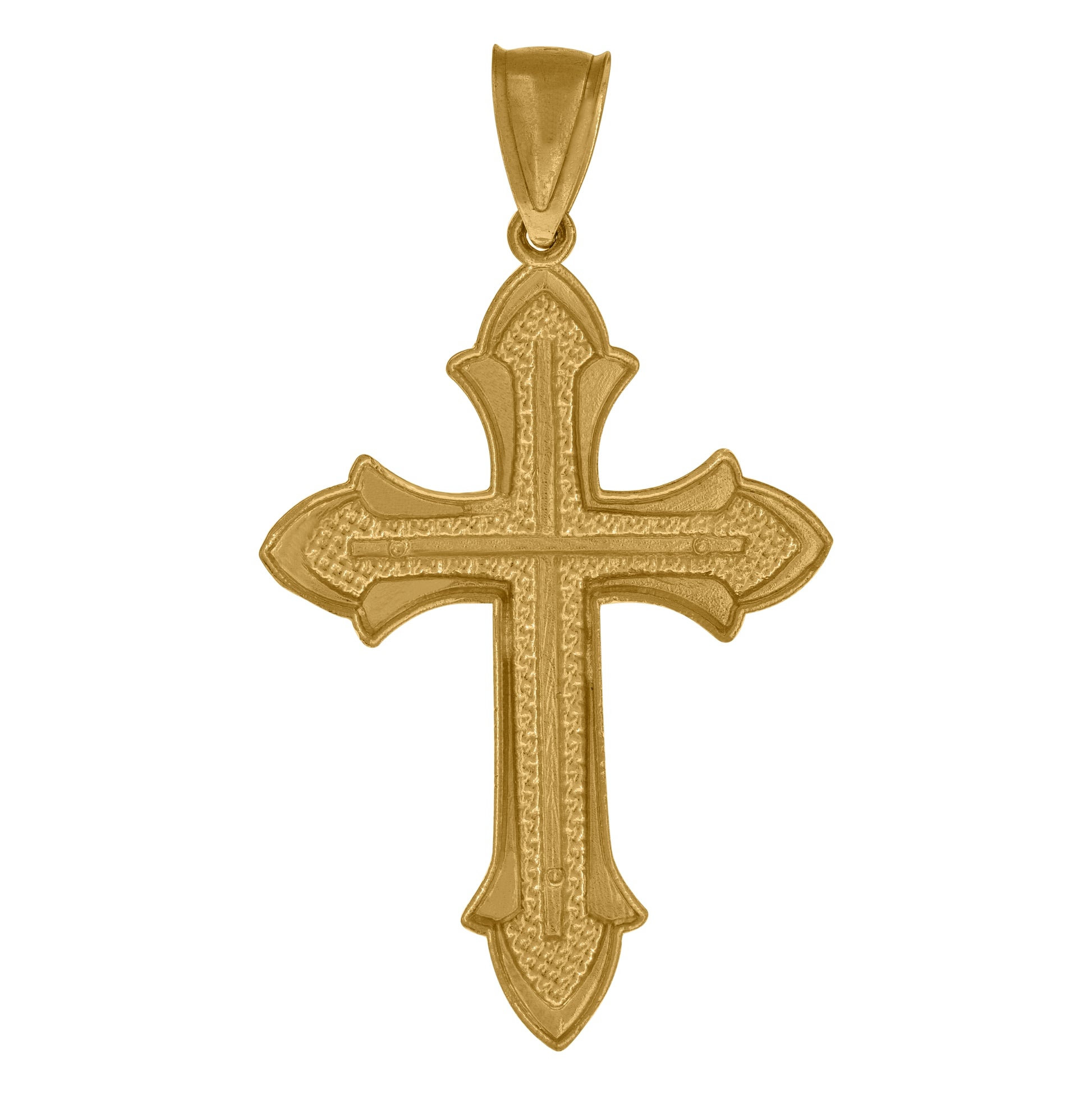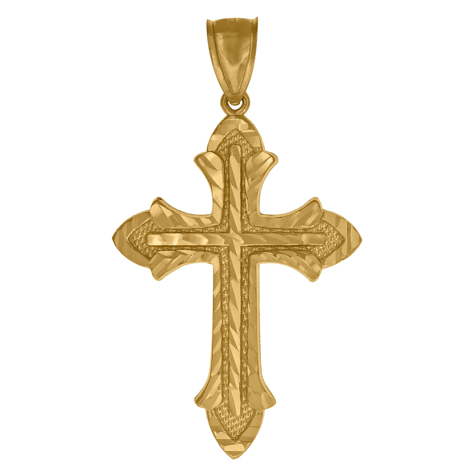 10K Yellow Gold Diamond-Cut Mens Cross Religious Charm Pendant