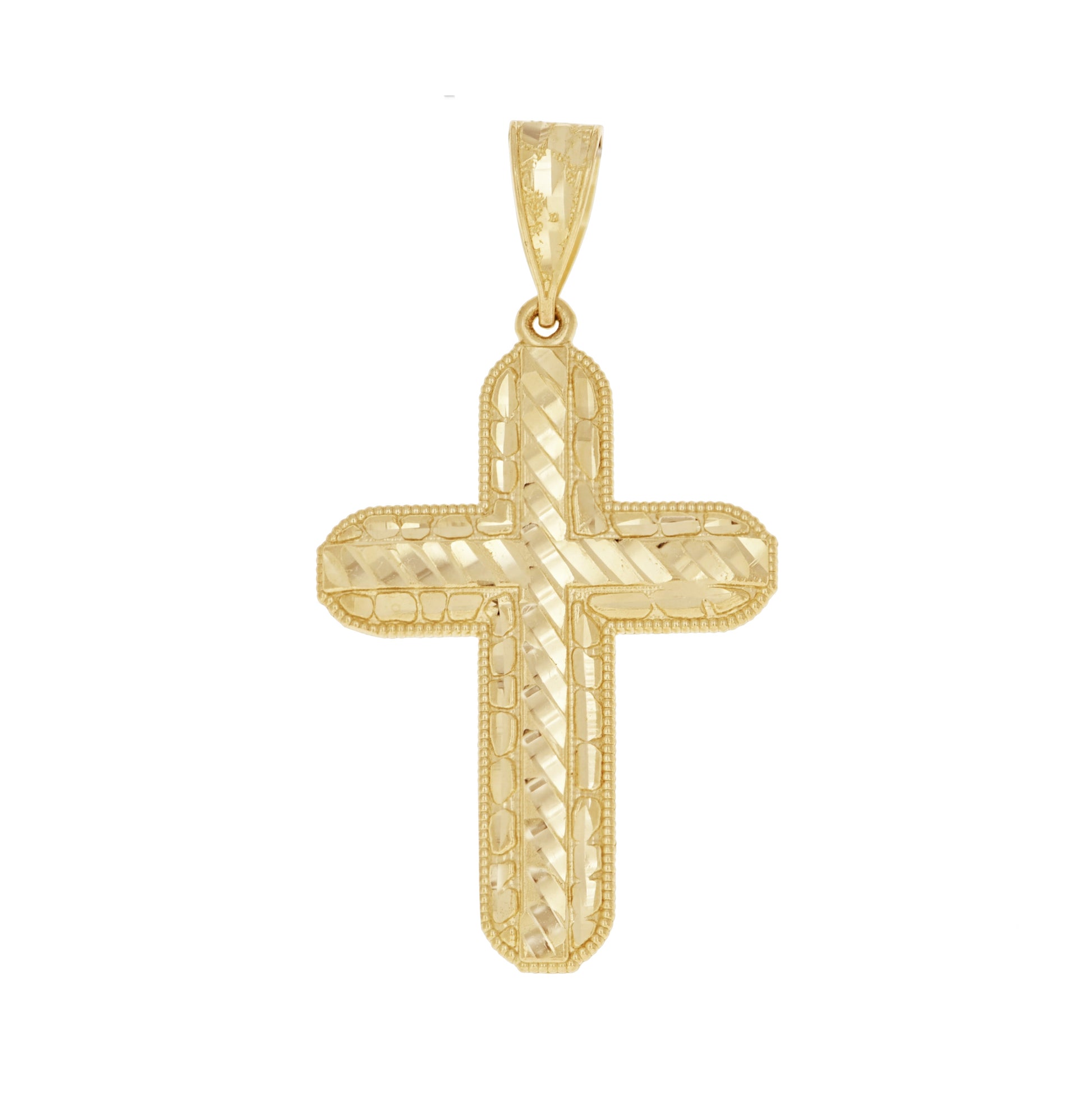 10K Yellow Gold Diamond-Cut Mens Nugget Cross Religious Charm Pendant