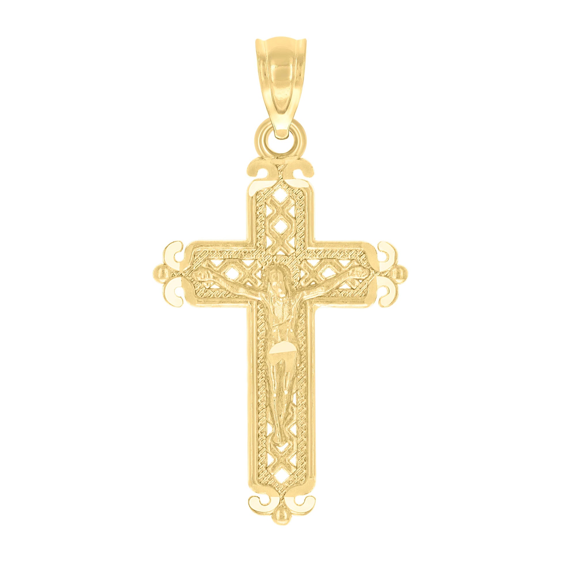 10K Yellow Gold Diamond-Cut Unisex Cross Crucifix Religious Charm Pendant