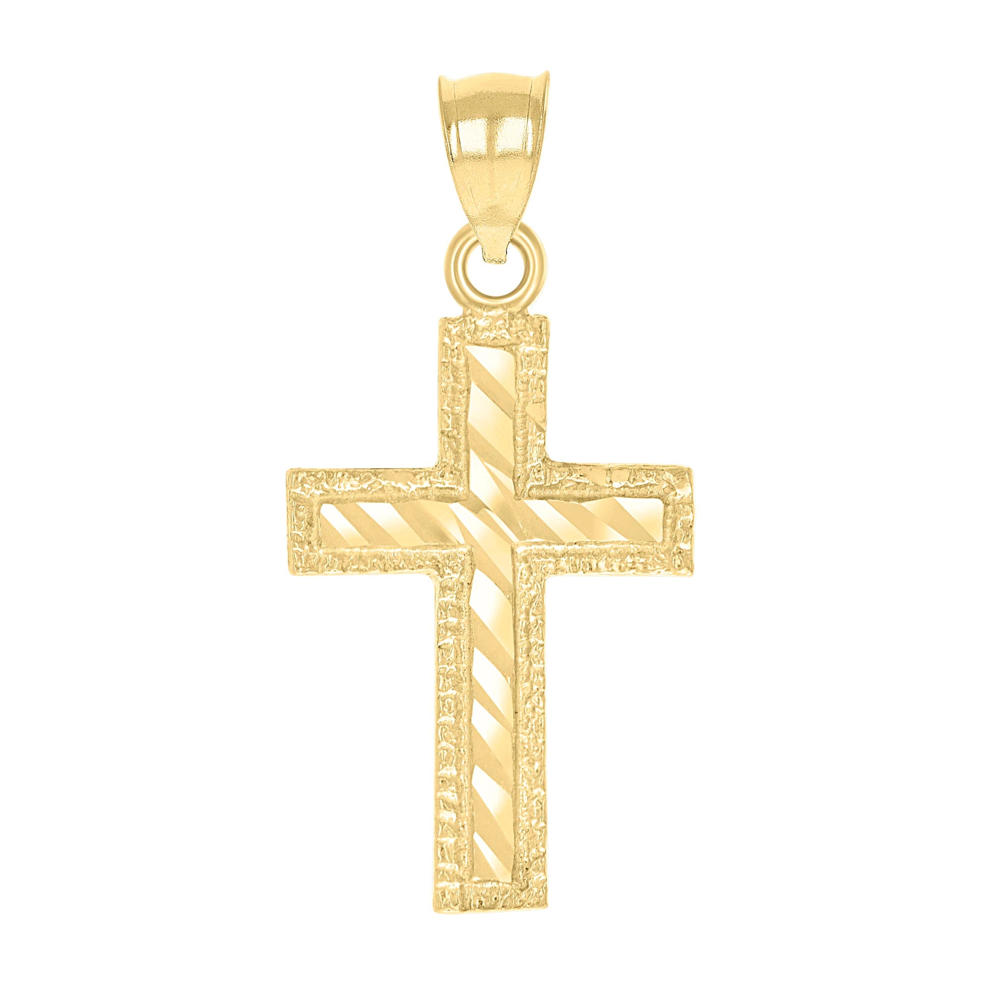 10K Yellow Gold Diamond-Cut Unisex Cross Religious Charm Pendant
