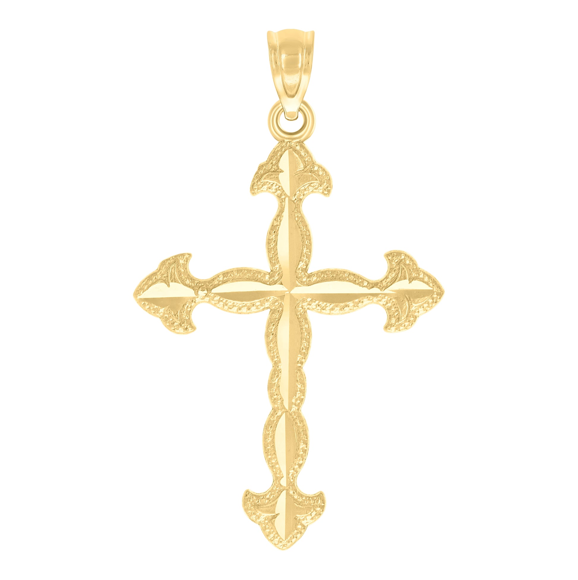 10K Yellow Gold Diamond-Cut Unisex Cross Religious Charm Pendant