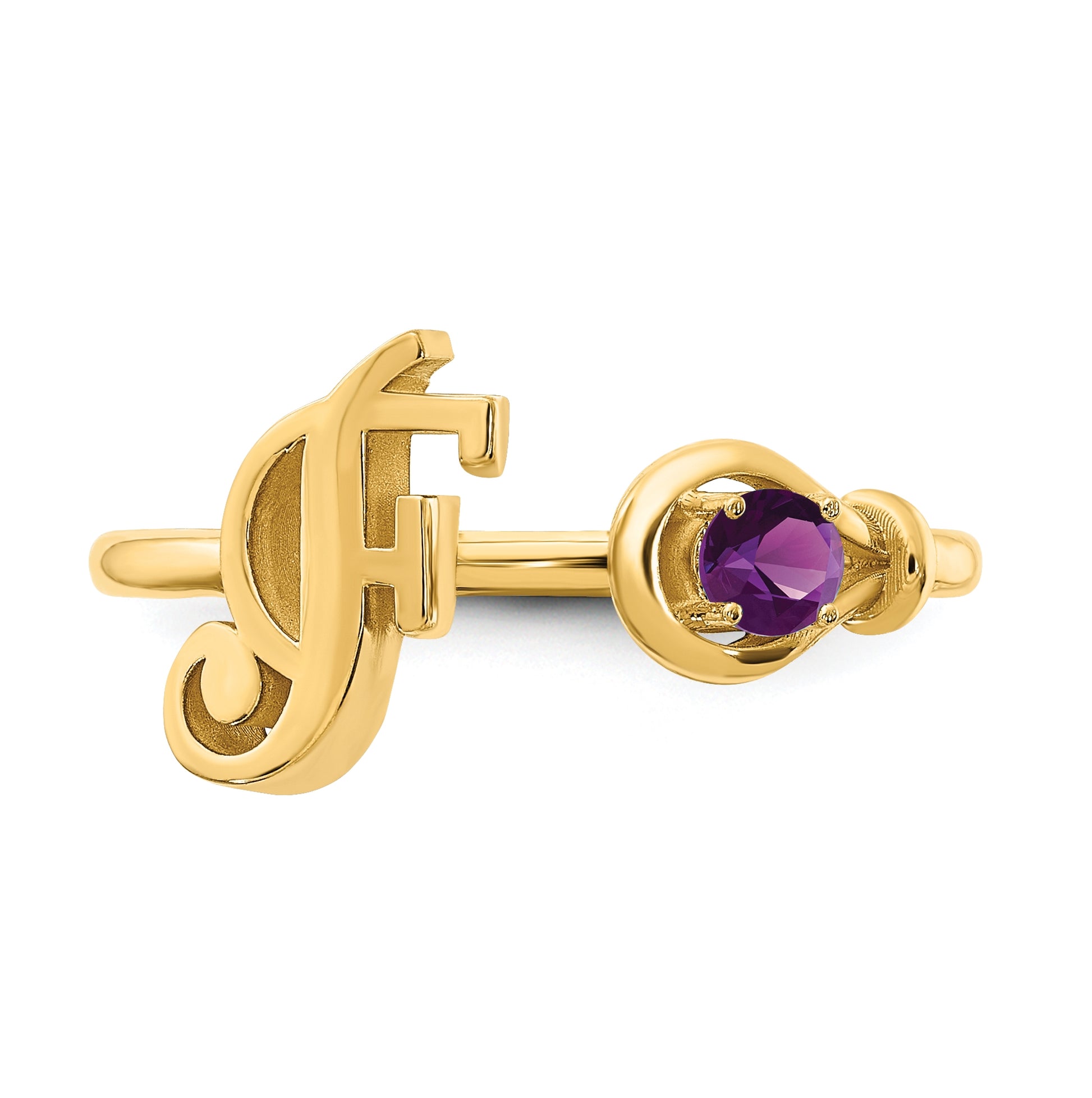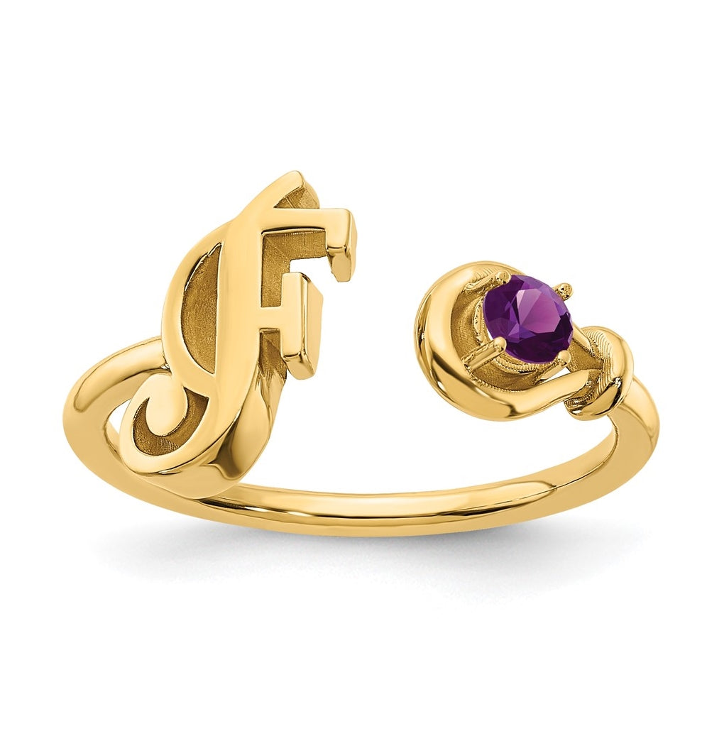 10K Yellow Gold Letter F with Birthstone Ring