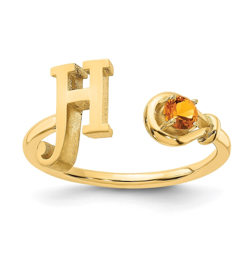 10K Yellow Gold Letter H with Birthstone Ring