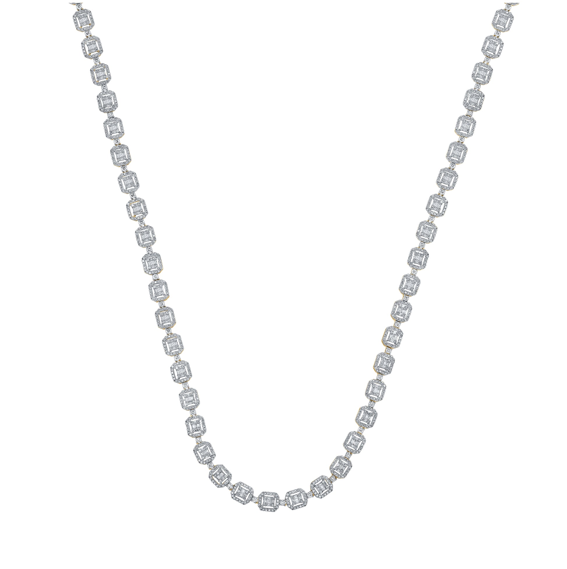 10K Yellow Gold Mens Baguette Diamond 22-inch Square Link Chain Necklace 9 Cttw, Length: 22.01 In, Width: 0.29 In