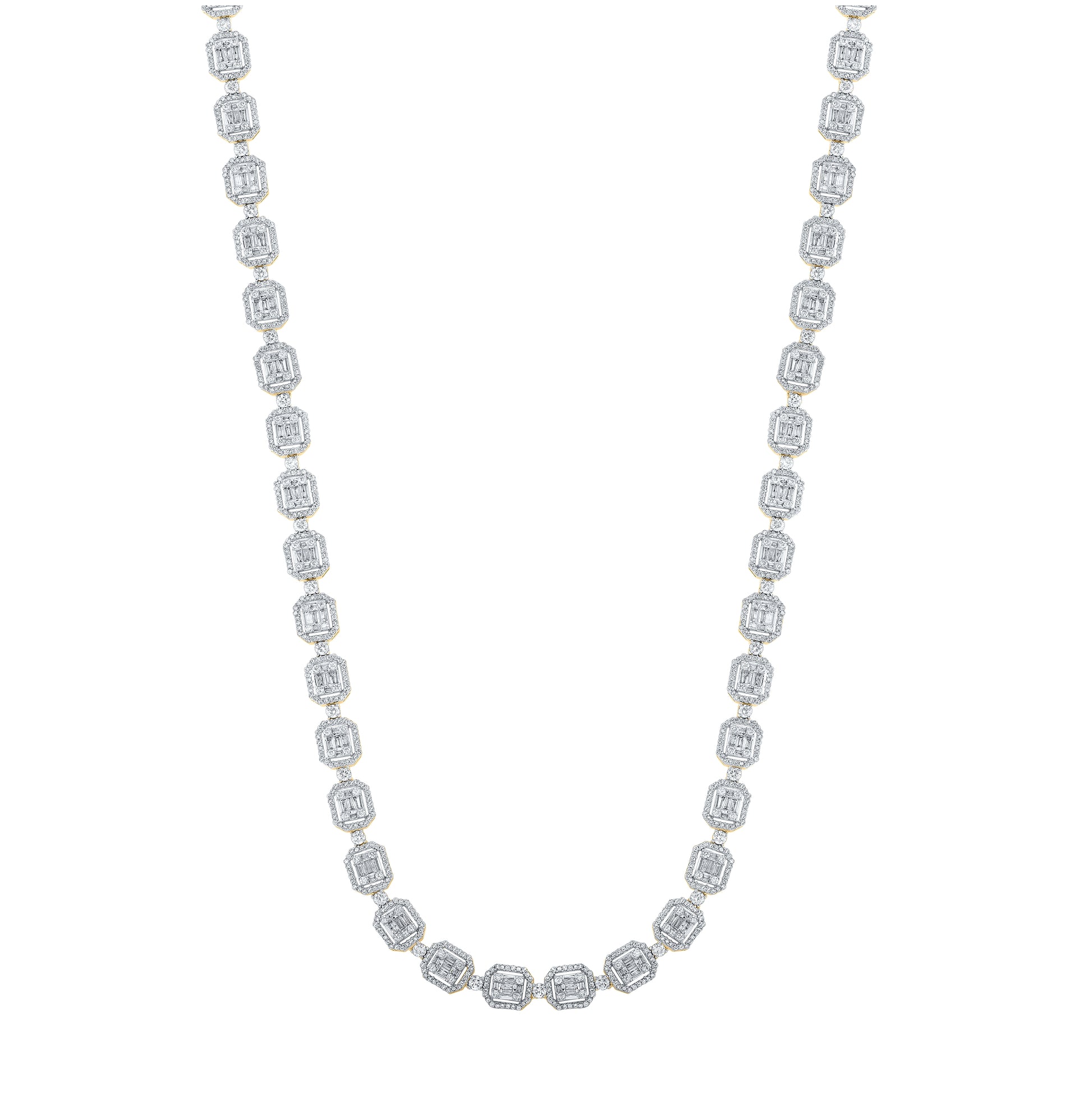 10K Yellow Gold Mens Baguette Diamond 24-inch Link Chain Necklace 15 Cttw, Length: 24.02 In, Width: 0.37 In