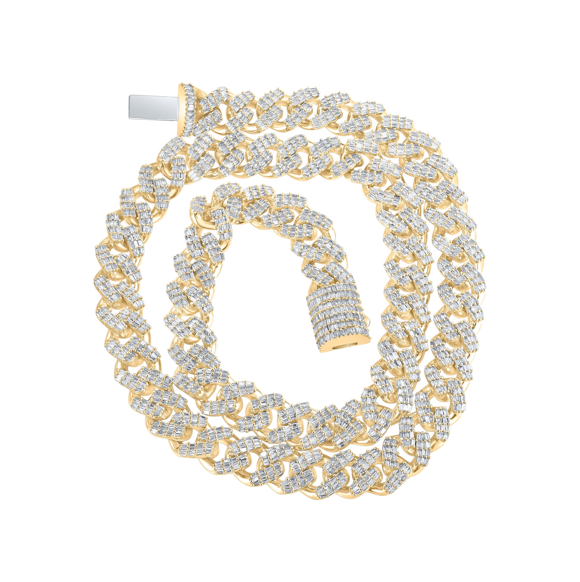 10K Yellow Gold Mens Baguette Diamond Cuban Link Chain Necklace 10 Cttw, Length: 17.99 In, Width: 0.39 In